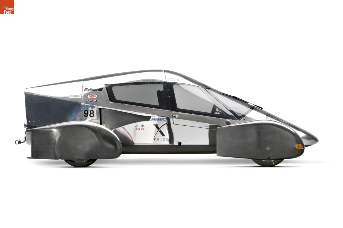 The Progressive Automotive X Prize was a competition to build a high efficiency automobile. The Edison2 was designed to win that prize--and it did. The car's designers used sleek wind-cheating lines and extremely light weight to produce a car that seated four people but got 102.5 miles per gallon.