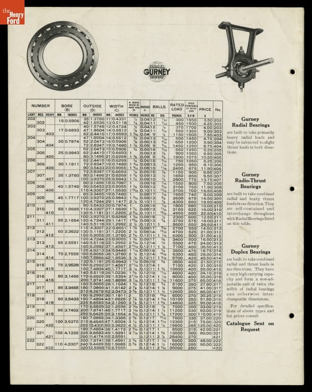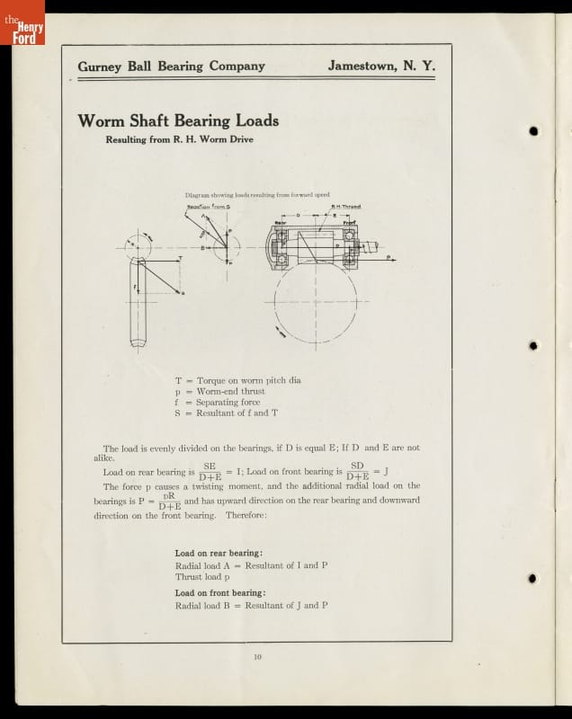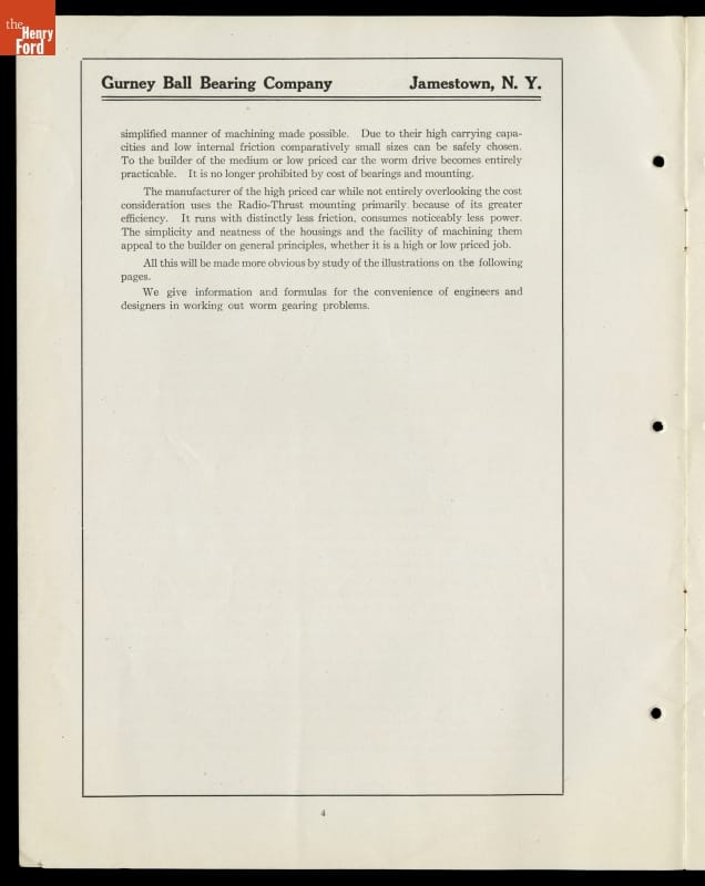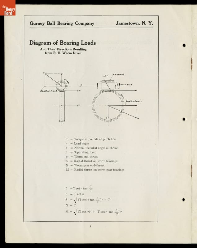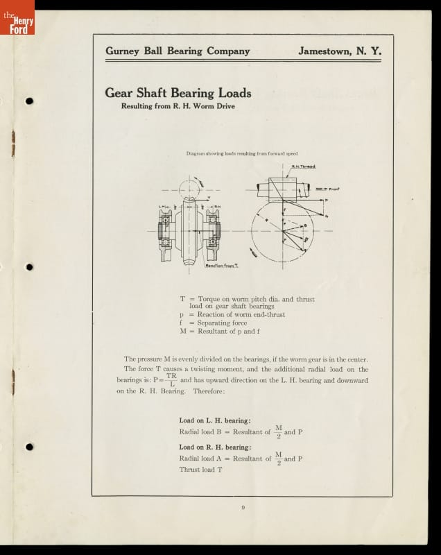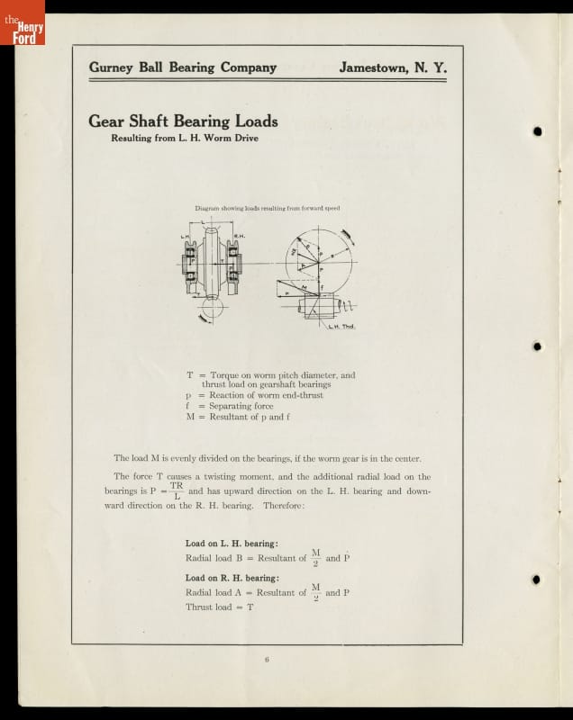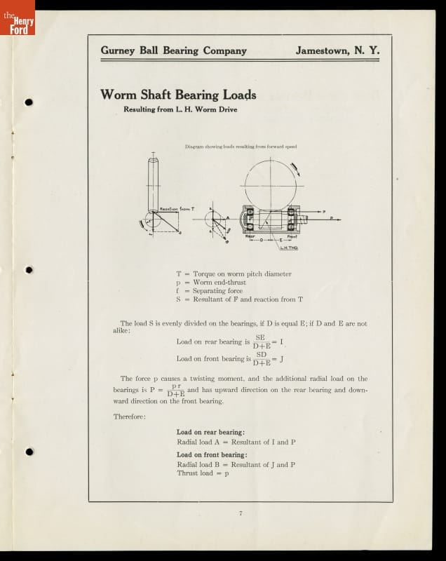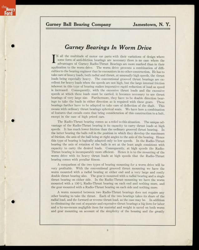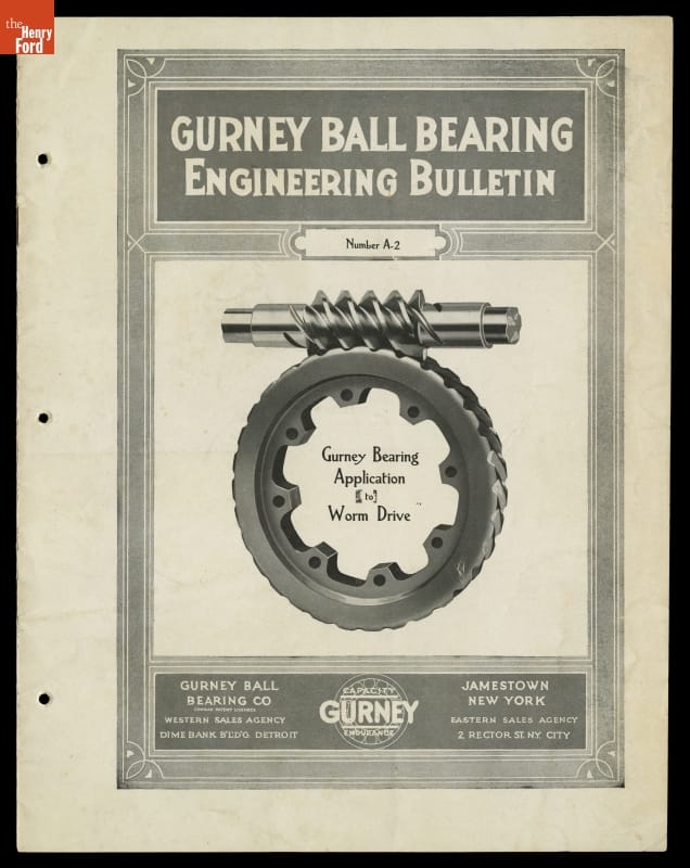 Gurney Ball Bearing Engineering Bulletin A-2, "Gurney Bearing Application to Worm Drive," 1915