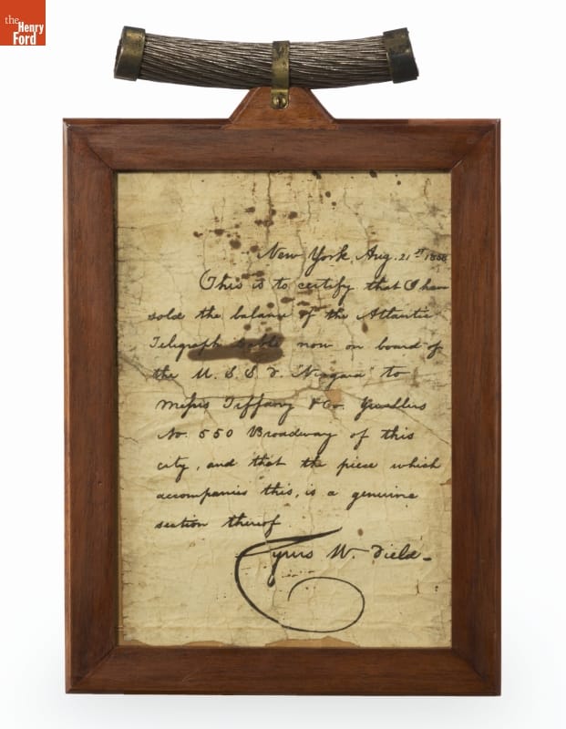 Section of the First Transatlantic Cable with Certificate, 1858