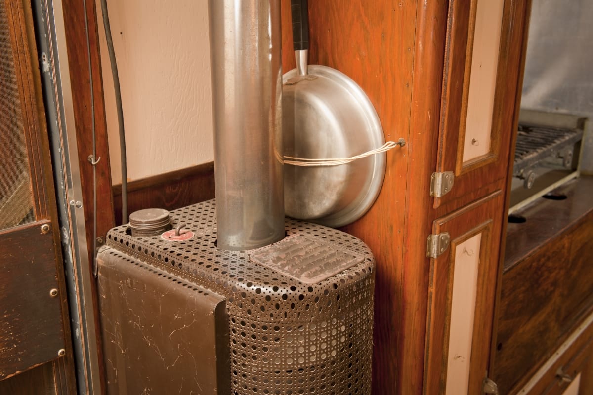 The following is handwritten on the bottom of a kitchen drawer in the trailer, by (most likely) Charles A. Lindbergh: TRAILER TRIPS- STATES DRIVEN THROUGH MICHIGAN - 1942 (A.M.L. & C.A.L) CONNECTICUT - 1944 (A.M.L & CAL) MASSACHUSETTS - 1945 (A.M.L., C.A.L., JON & LAND) NEW HAMPSHIRE - 1945 (A.M.L., C.A.L., JON & LAND) MAINE - 1945 (A.M.L., C.A.L., JON & LAND) NEW YORK - 1946 (A.M.L. & C.A.L.) NEW JERSEY - 1946 (A.M.L. & C.A.L.) PENNSYLVANIA - 1946 (A.M.L. & C.A.L.) MARYLAND - 1946 (A.M.L. & C.A.L.) VIRGINIA - 1946 (A.M.L. & C.A.L.) NORTH CAROLINA - 1946 (A.M.L. & C.A.L.) SOUTH CAROLINA - 1946 (A.M.L. & C.A.L.) GEORGIA - 1946 (A.M.L. & C.A.L.) FLORIDA - 1946 (A.M.L. & C.A.L.) (KEY WEST) DISTRICT OF COLUMBIA - 1946 (A.M.L. & C.A.L.) DELAWARE - 1946 (A.M.L. & C.A.L.) WEST VIRGINIA - 1947 (C.A.L.) (& AML-'47) OHIO - 1947 (C.A.L.) INDIANA - 1947 (C.A.L.) MISSOURI - 1947 (C.A.L.) KANSAS - 1947 (C.A.L.) OKLAHOMA - 1947 (C.A.L.) TEXAS - 1947 (C.A.L.) (& AML-'47) NEW MEXICO - 1947 (C.A.L.) (& AML-'47) ARIZONA - 1947 (A.M.L. & C.A.L.) / UTAH - 1947 (AML & CAL) NEVADA - 1947 (AML & CAL) CALIFORNIA - 1947 (AML & CAL) OREGON - 1947 (AML & C.A.L.) WASHINGTON - 1947 (A.M.L. & CAL) IDAHO - 1947 (AML & CAL) COLORADO - 1947 (AML & CAL) / LOUISIANA - 1947 (AML & CAL) MISSISSIPPI - 1947 (AML & CAL) ALABAMA - 1947 (AML & CAL) TENNESSEE - 1947 (AML & CAL) KENTUCKY - 1952 (CAL) FLORIDA - 1952 (AML, LAND, ANNE, SCOTT, REEVE. CANADA - 1957 - (CHL & CAL) ONTARIO / THIS TRAILER WAS ONCE OWNED, AND USED AS AN EXPERIMENT IN TRANSPORTATION BY HENRY FORD. IT WAS EXHIBITED IN THE EDISON INSTITUTE, DEARBORN FOR A NUMBER OF YEARS TO DEMONSTRATE FUTURE POSSIBILITIES OF MOTOR TRANSPORT. IT WAS GIVEN TO US BY HENRY FORD IN THE FALL OF 1942 WHEN HE LEARNED THAT WE WERE PLANNING TO BUY A TRAILER TO PLACE SOME DISTANCE FROM OUR HOUSE AS A RETREAT IN WHICH WE COULD WRITE AND STUDY WITHOUT DISTURBANCE. YEAR - LOCATION 1942 - BELKNAP PROPERTY, BLOOMFIELD HILLS, MICH. 1943 - " " " " " " " " 1943 - PATTERSON PROPERTY, BLOOMFIELD HILLS, MICH. 1944 - " " " " " " " " 1944 - TOMPKINS PROPERTY, WESTPORT, CONN. 1945 - " " " " " " " " 1946 - " " " " " " " " 1946 - SCOTTS COVE, DARIEN, CONN. 1946 - CONTENTMENT ISLAND, DARIEN, CONN. 1947 - " " " " " " 1947 - SCOTTS COVE, DARIEN, CONN. [AML = Anne Morrow Lindbergh; CAL = Charles Augustus Lindbergh; Jon Lindbergh (b.1932), Land Morrow Lindbergh (b.1937); Anne Lindbergh (b.1940), Scott Lindbergh (b.1942) and Reeve Lindbergh (b.1945).] Marked on trailer hitch: 150 SLIMP. K in diamond Decal on right door of upper sink cabinet and above bathroom closet: STAGE COACH TRAILER / A CUSTOM BUILT PRODUCT OF / IDEAL MANUFACTURING CORP. / MISHAWAKA, INDIANA (blue/bronze colored w/ engraved stagecoach and horses) Tag tacked to interior of right upper sink cabinet: LUBRICATION CAUTION / AFTER INSTALLATION OF SLIMPWHEEL COUPLER [...] SLIMP AXLE PRODUCTS Paper tacked on interior upper left cabinet above stove: (in pencil) NEW TRAILER STOVE / (1948) / (printed) OPERATING DIRECTIONS [...] Paper tacked on interior upper left cabinet above stove: (handwritten) COOKING STOVE & HEATER / BOTH RUN ON KERSOSENE. / PRIME COOKING STOVE WITH ALCOHOL. Paper on interior of upper center cabinet above stove: (printed) DIRECTIONS / WILLIS KEROSENE STOVES [...]