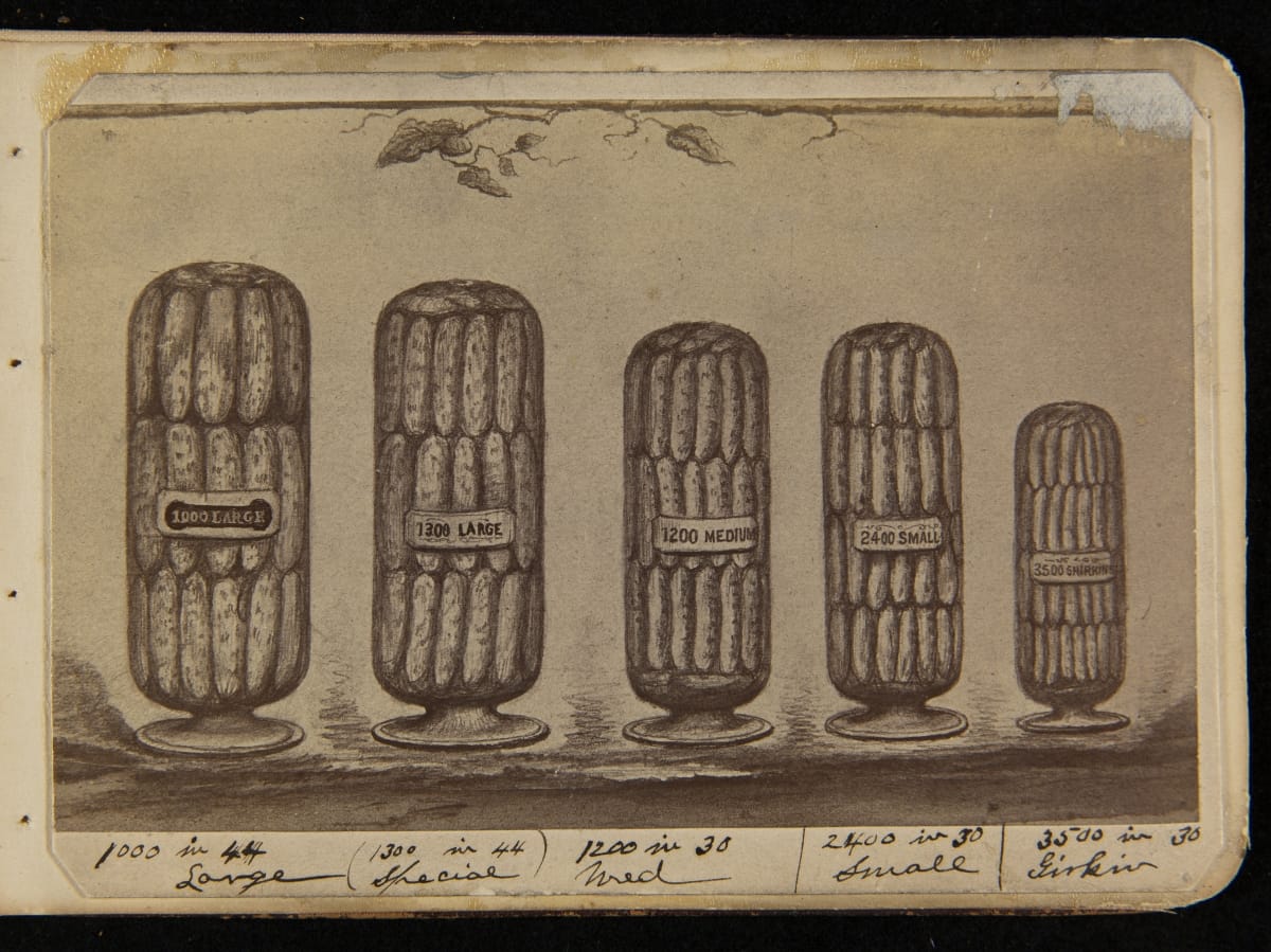 After H.J. Heinz lost his first business to bankruptcy, he persuaded his brother and cousin to form the F. & J. Heinz Company in 1876 -- the precursor to the H.J. Heinz Company. Working with them, Heinz helped the company gain a reputation for high-quality pickled foods and condiments. This catalogue shows the many varieties of products the company offered in 1878.