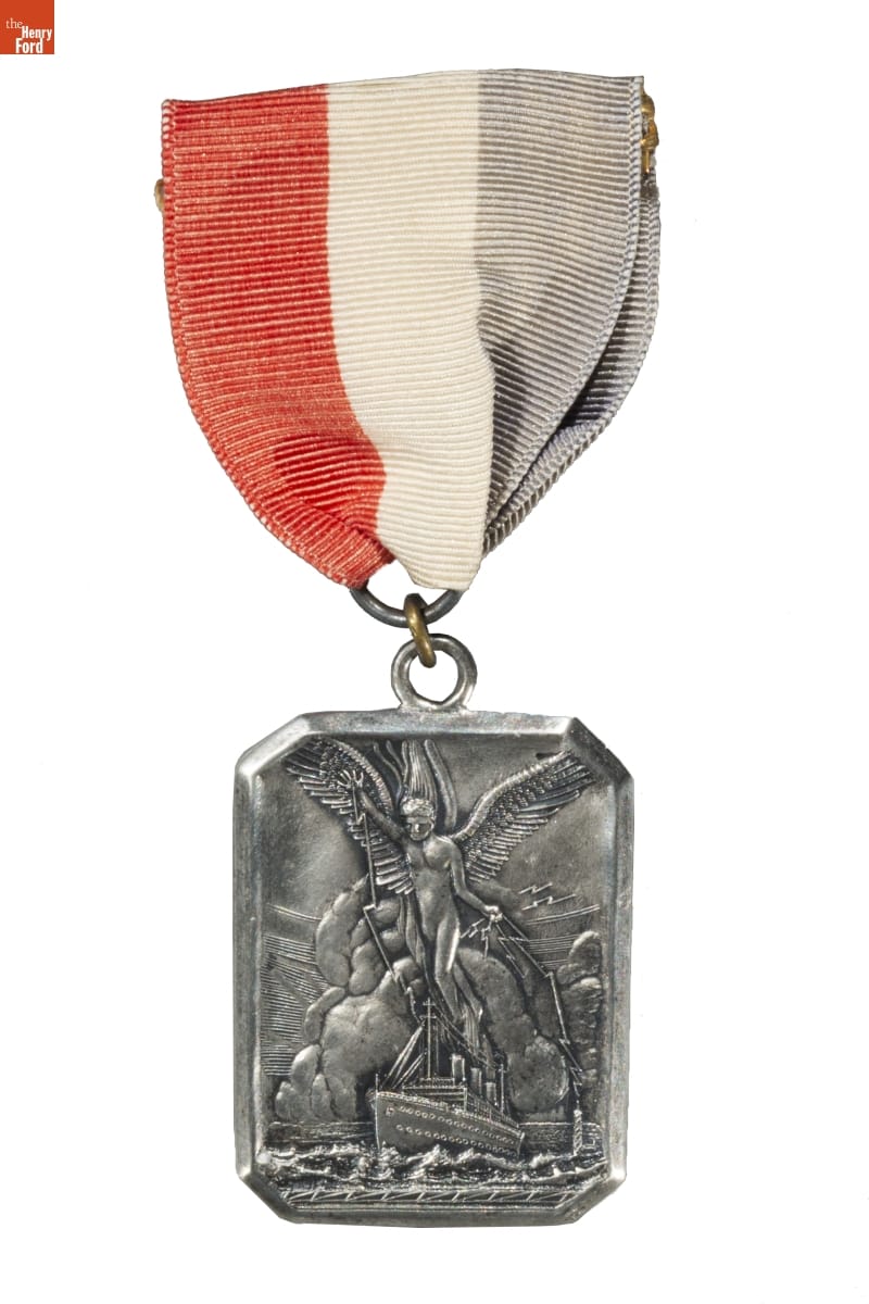 In 1909, telegraph operator Theodore Haubner sent the first American ship-to-shore wireless distress signal--SOS. Haubner was aboard the SS Arapahoe off Cape Hatteras, North Carolina, when it became disabled. The Veteran Wireless Operators Association honored Haubner by awarding him this commemorative medal on the 30th anniversary of his achievement.