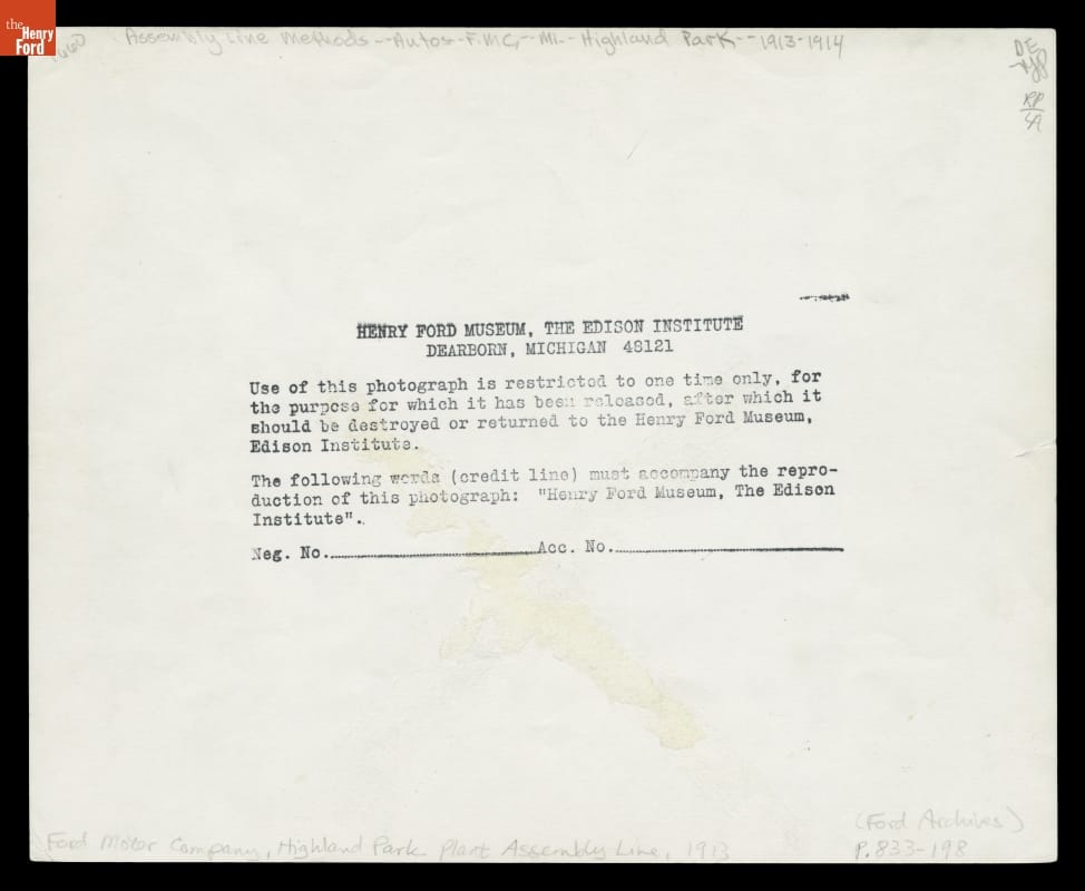 Workers Installing Engines on Ford Model T Assembly Line at Highland Park Plant, 1913
