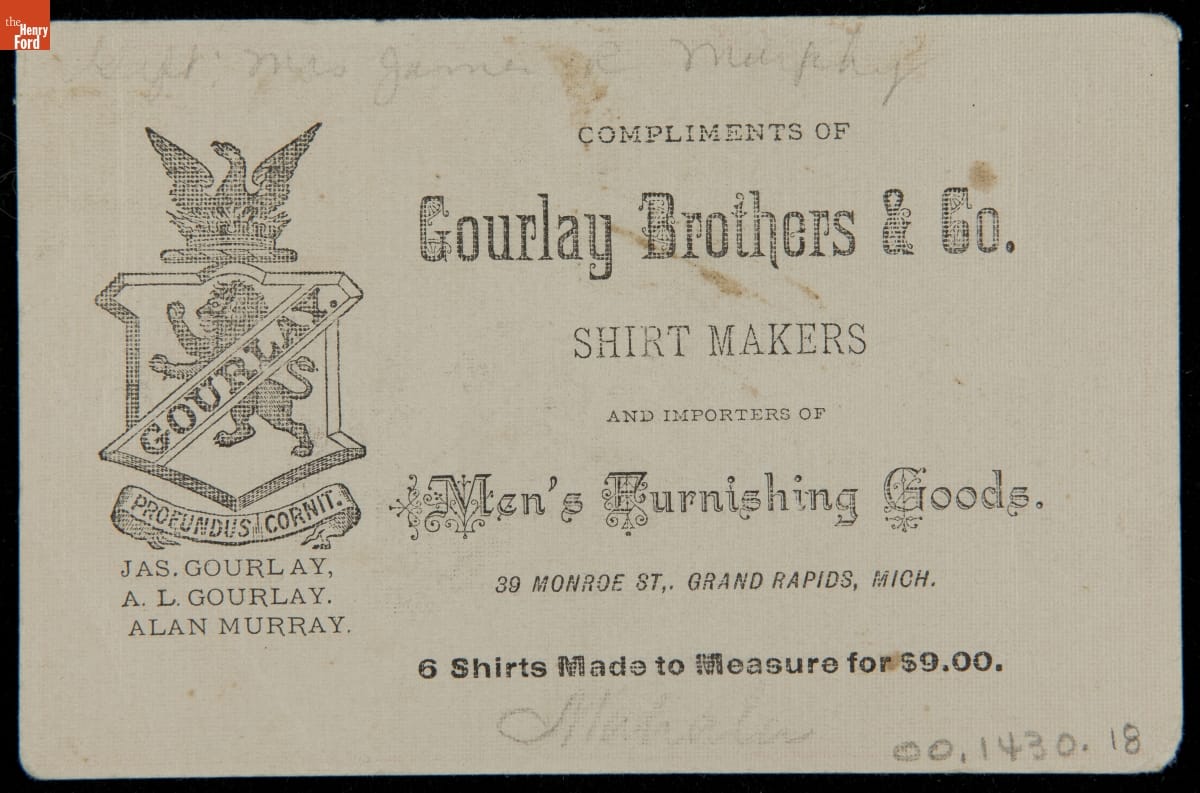 Trade Card for Gourlay Brothers & Co., Shirt Makers and Importers Men's Furnishing Goods, 1875-1890