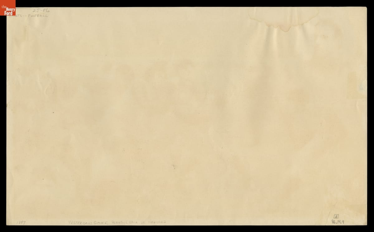 Photolithograph, "Yesterday's Game, Pennsylvania vs. Harvard. Franklin Field, Philadelphia," 1897