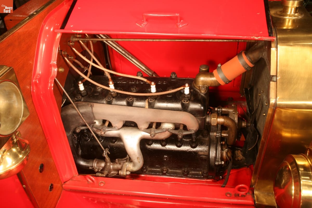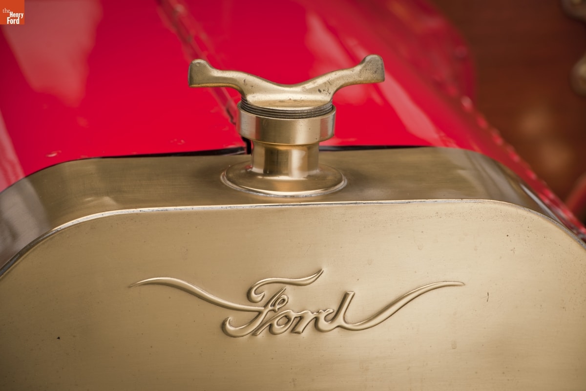 on plate, rear of car: FORD MOTOR CO. / DETROIT, MICH. on dash lamps: E&J / PAT / DEC. 9, 1908 / DETROIT, MICH. on headlamps: THE EDMUNDS & JONES MF'G CO / MODEL 466 / DETROIT on radiator & radiator shell: FORD on plate under front bench: FORD MOTOR COMPANY / DETROIT MICH, USA