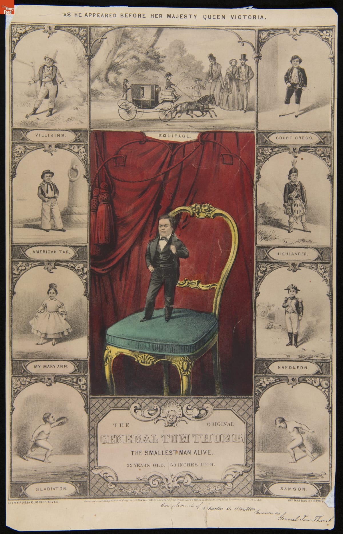 Lithograph, "The Original General Tom Thumb the Smallest Man Alive," 1860