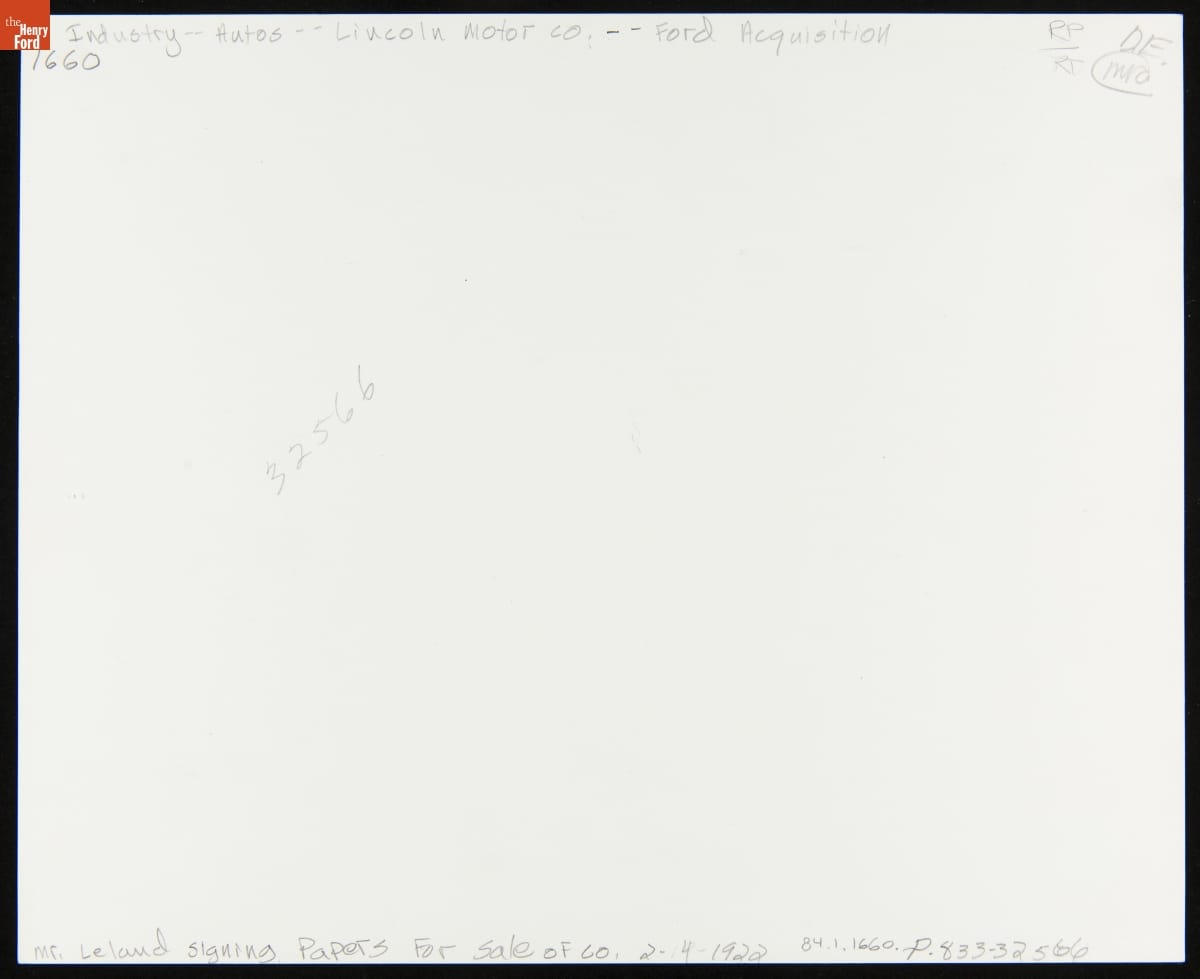 Henry Leland and William T. Nash at the Acquisition of Lincoln Motor Co. by Ford Motor Co., 1922