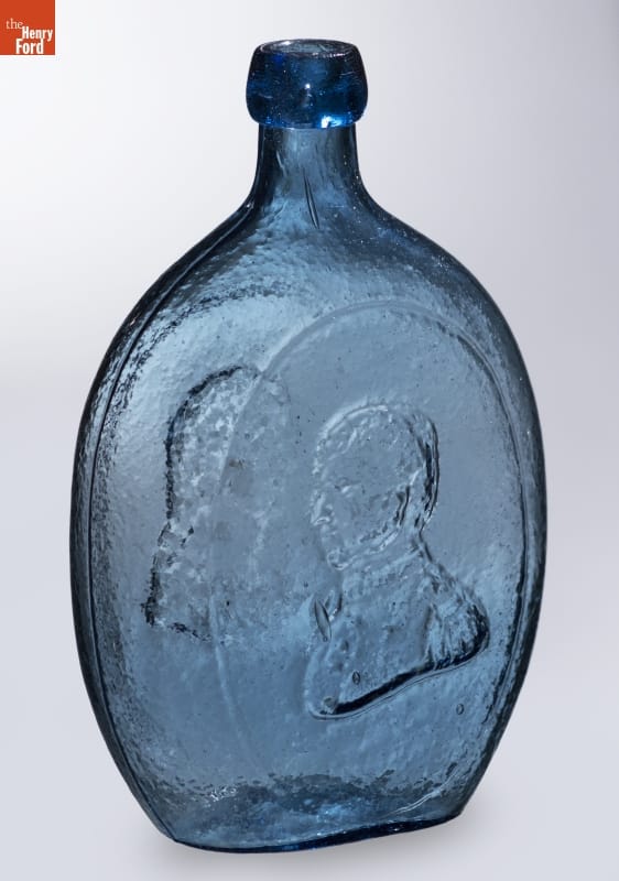Whether depicted as commander-in-chief, the first president of the United States, or a symbol of the republic, George Washington is a common likeness on early American flasks. Washington appears on 72 recorded flask designs--more than any other person. This example depicts Washington as a classical statesman with major general Zachary Taylor, who became the 12th United States president in 1849.
