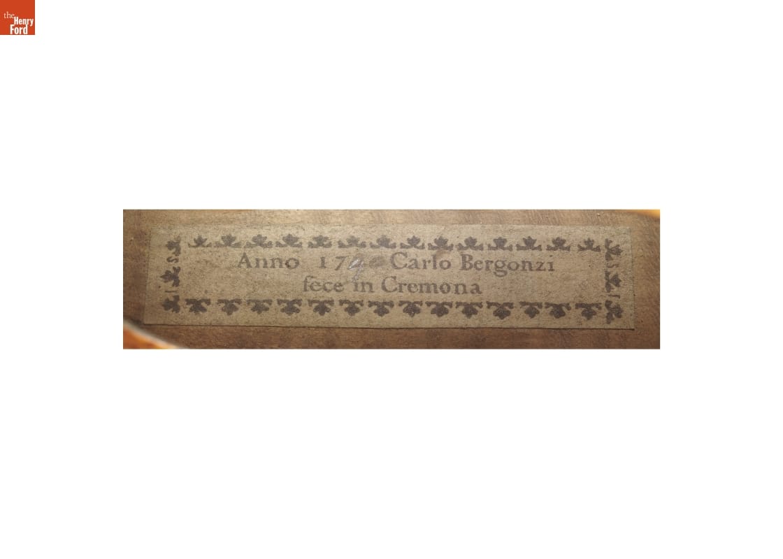 In the 1920s, Henry Ford purchased several exquisite Italian violins, including this one by Carlo Bergonzi. Bergonzi's violins are prized for their powerful, yet sweet tone. This 1740 violin--one of the finest examples of Bergonzi's work--was owned by William Ackroyd from 1915 to about 1922. Ackroyd was the violin master at the Harrow School, a renowned school for boys located in London.