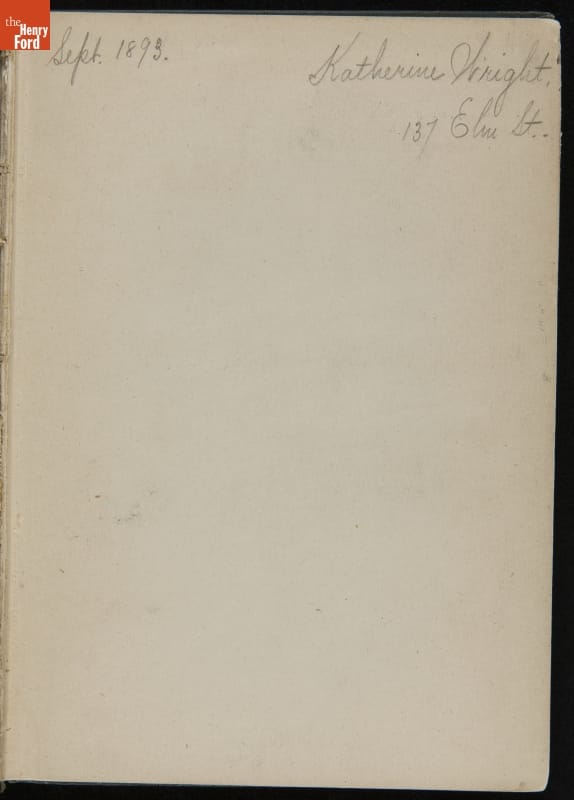 in pencil on first page: Sept. 1893. / Katherine Wright / 137 Elm St.