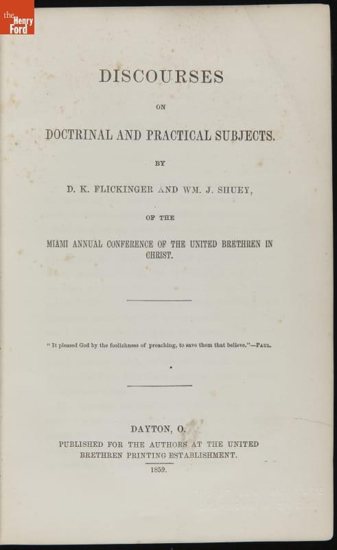 Written by D. K. Flickinger and William J. Shuey and published by the Printing Establishment of the United Brethren in Christ, Dayton, Ohio.