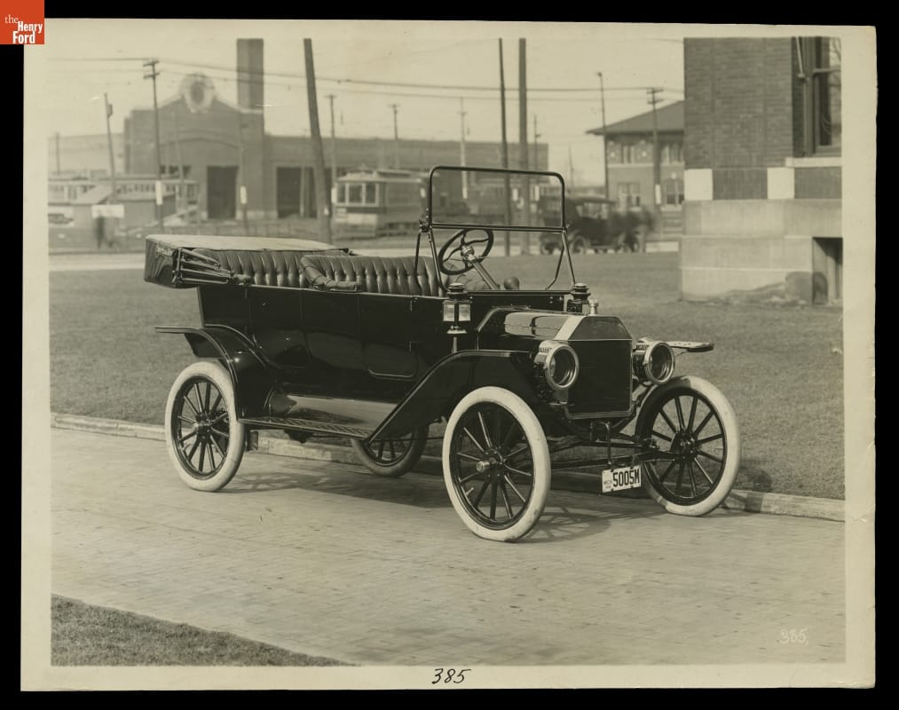 The affordable and popular Model T gave its owners an unprecedented degree of freedom in their travel. Car owners no longer were dependent on railroad and streetcar schedules or routes. This 1914 Model T was photographed in front of a car barn where streetcars were serviced and stored between their regular runs.