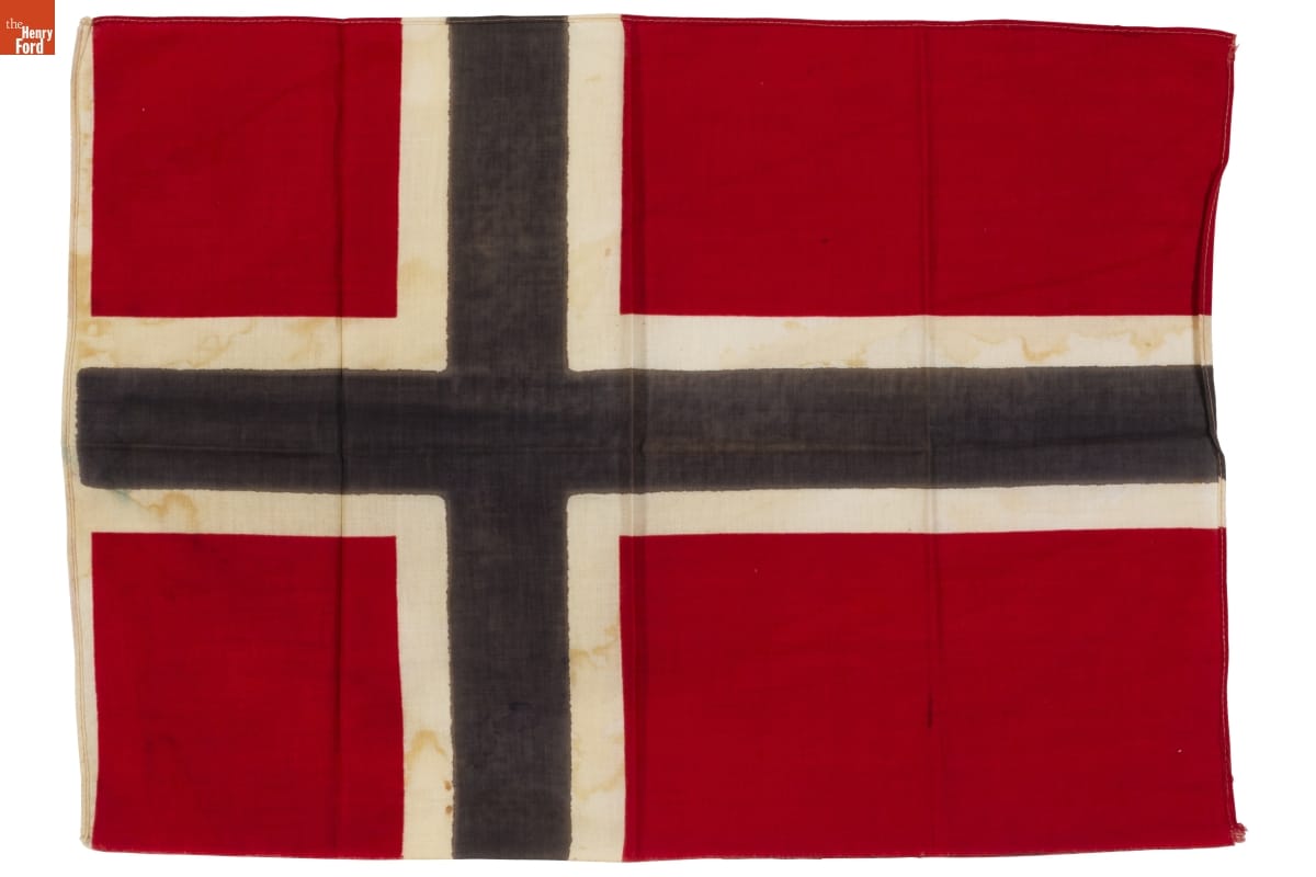 Under the command of explorer Roald Amundsen, the Gjoa was the first ship to sail through the entire Northwest Passage. Amundsen and six crew members left Kristiania (present-day Oslo), Norway, in June 1903 and arrived at Nome, Alaska, in September 1906. Amundsen presented this small Norwegian flag to Mary Bruner, a resident of Nome, during a dinner reception in his honor.