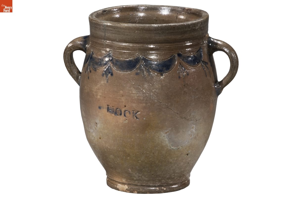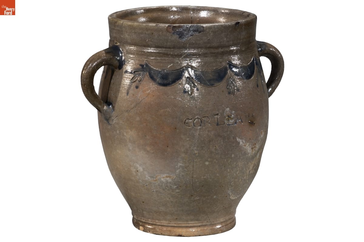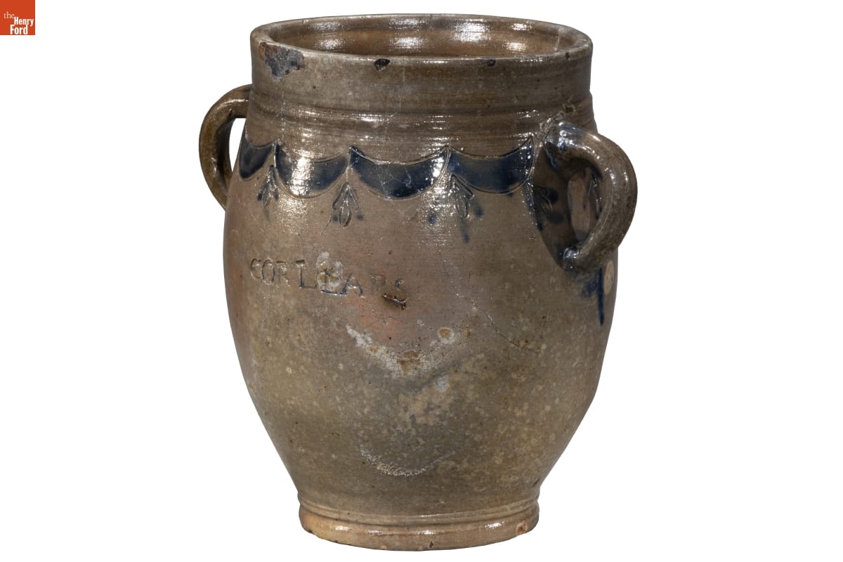 Thomas Commeraw, a free African American potter and entrepreneur, produced salt-glazed stoneware in the Corlears Hook neighborhood of New York City from 1791 to 1819. These stoneware jars and crocks were durable and helped preserve food for storage in cool cellars and ice houses. Commeraw's distinctive stoneware typically contains cobalt blue swags and tassel decoration.