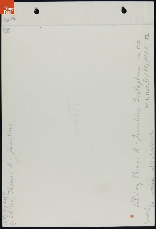 Thomas Edison with an "Ediphone" Dictation Machine at His Desk in the West Orange Laboratory, 1911