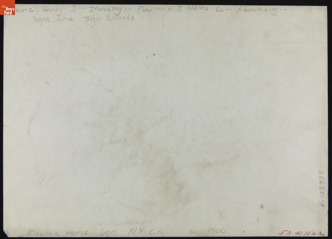 Electric Advertising Sign, H. J. Heinz Company, New York City, circa 1910