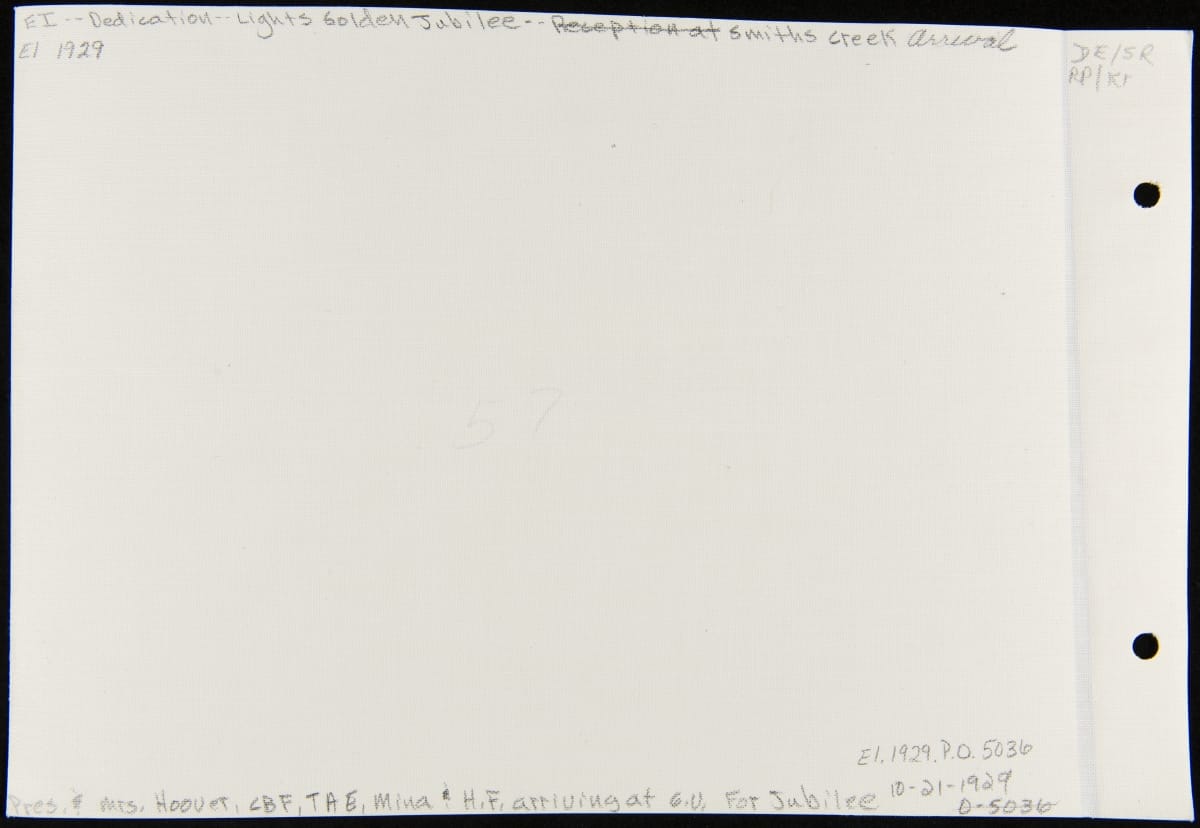 President Herbert Hoover, Lou Henry Hoover, Clara Bryant Ford, Thomas Edison, Mina Edison, and Henry Ford Arrive at Smiths Creek Station, October 21, 1929