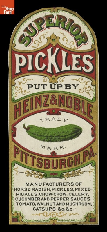 Product Label for "Superior Pickles Put Up by Heinz & Noble," 1871