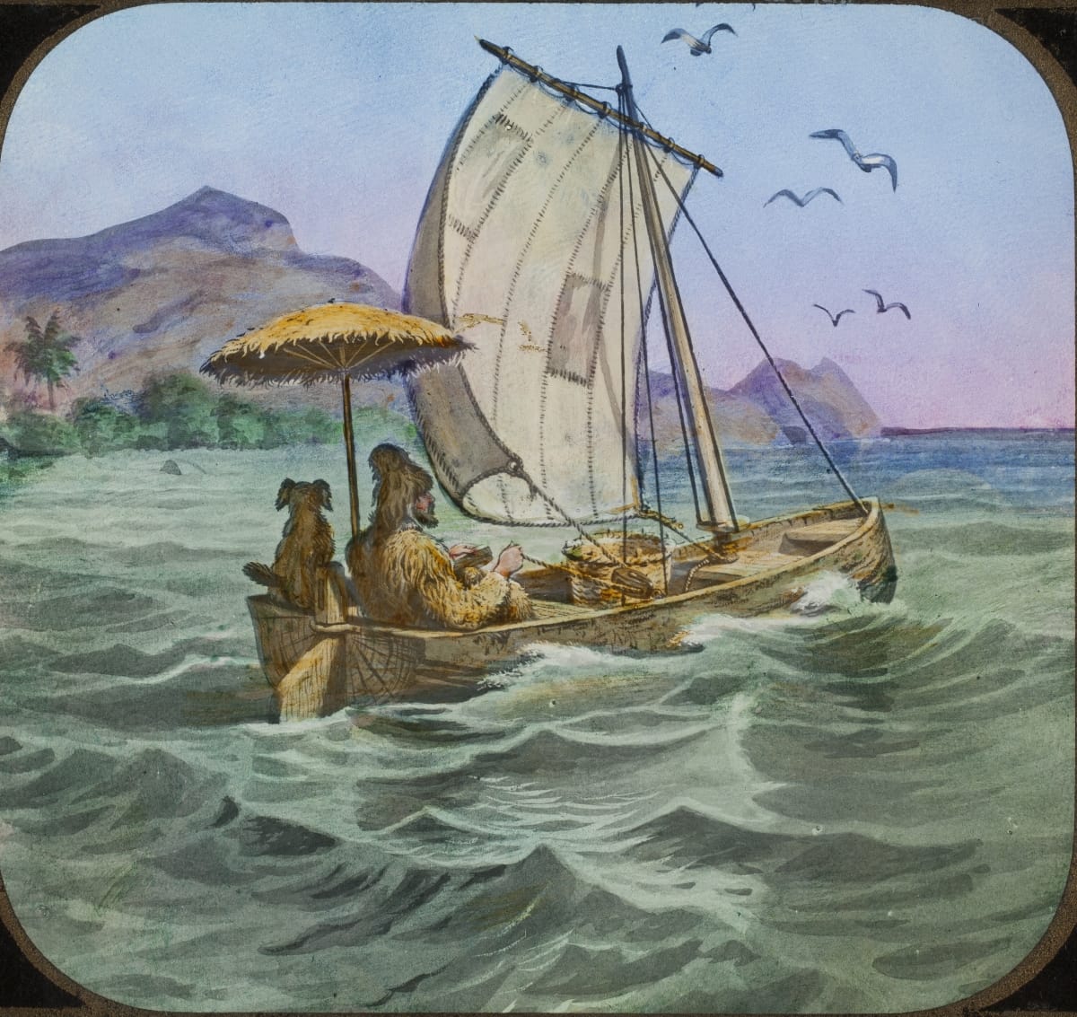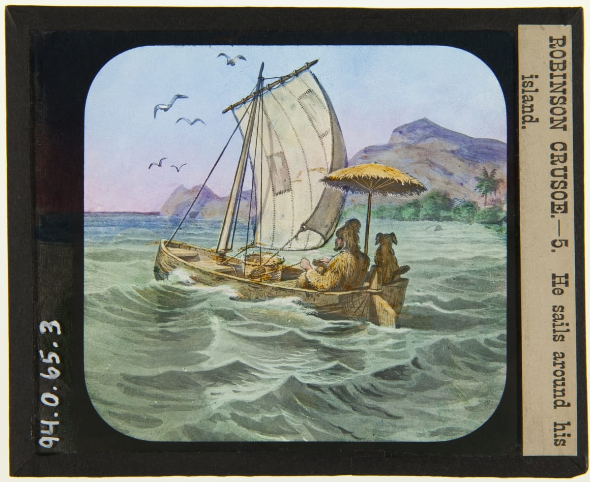Lantern Slide, "Robinson Crusoe, He Sails Around the Island," 1894