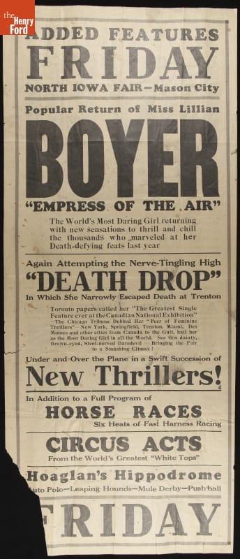 Air Show Poster, Miss Lillian Boyer, "Empress of the Air," 1926