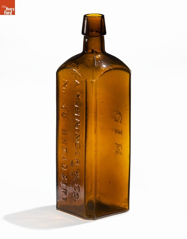 Abraham Bininger established a grocery business in New York City in the late 1700s. Family descendants carried on the trade into the late 1800s, selling alcoholic spirits in bottles with a variety of shapes. The bottles were often embossed with Bininger's name and description of the contents.