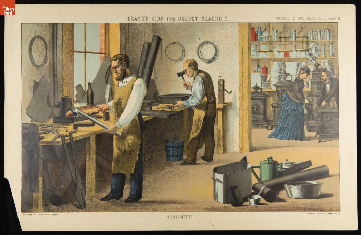 Chromolithograph, "Prang's Aids for Object Teaching, Trades & Occupations-Plate 11, Tinsmith," 1874
