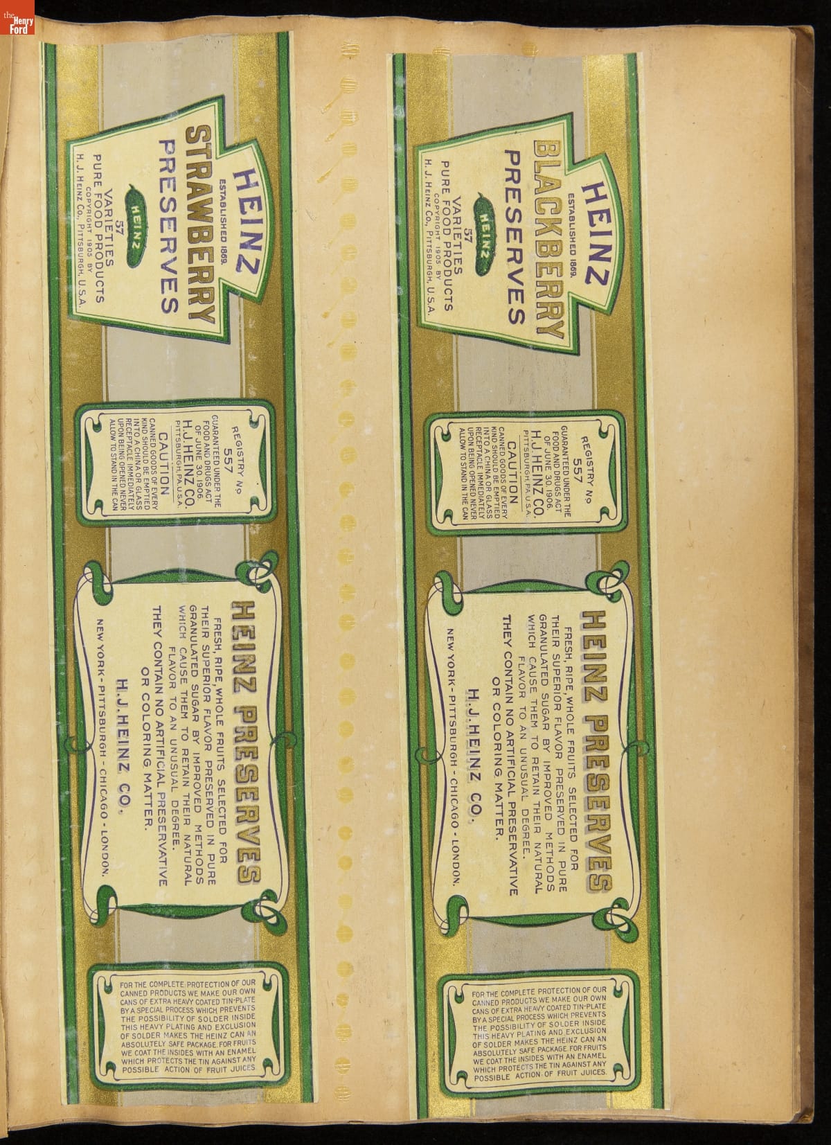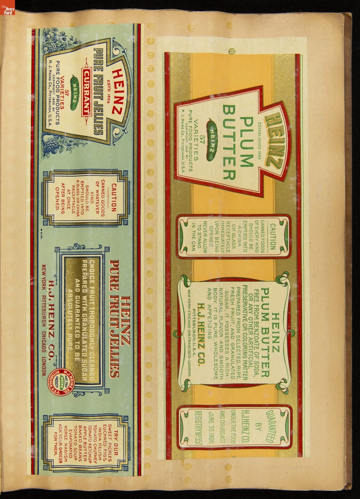 While "57 Varieties" became the well-known slogan for the H.J. Heinz Company, it actually produced more than 60 different products. This scrapbook provides a glimpse of some labels for the products produced by Heinz in the early twentieth century.