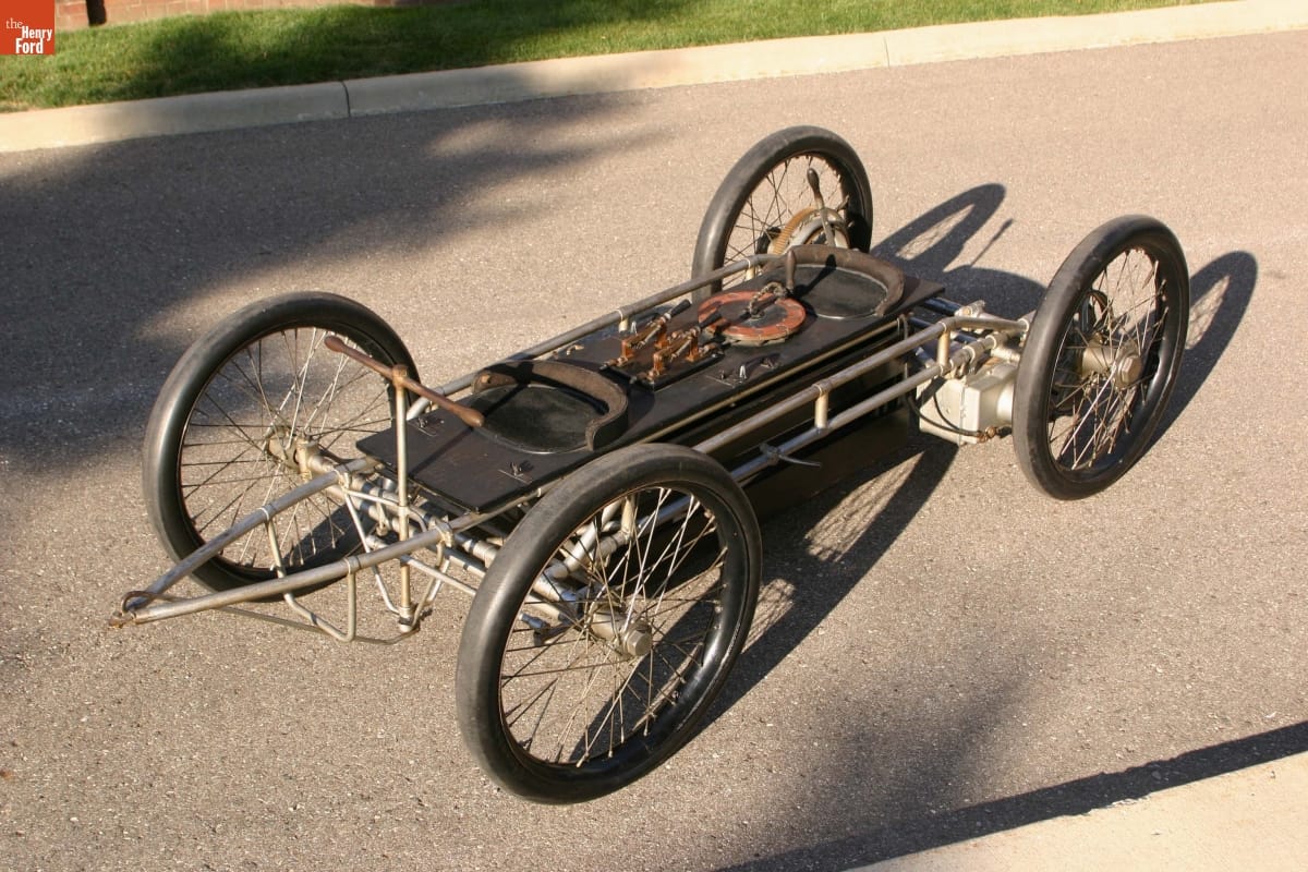 Andrew Riker, an early believer in the electric car, designed this battery-powered racer in 1901. He raced it at Coney Island, New York, that November and, at 57.1 miles per hour, set a world speed record for electric cars. It was a triumph for electricity, but Riker soon lost faith. He joined Locomobile the next year and started designing gasoline-powered automobiles.