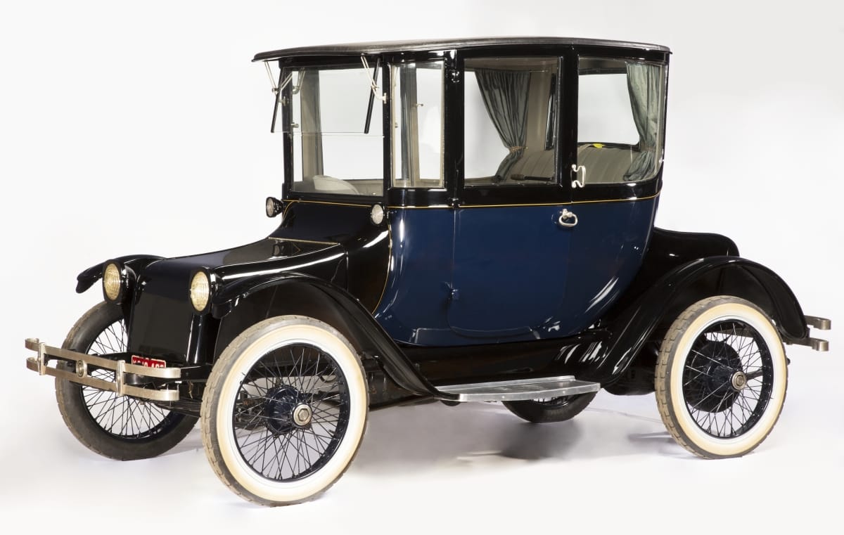 Detroit Electric was the best-known and longest-lived American electric car company. Detroit Electric built cars from 1907 to 1942, although after 1930 production was limited to custom orders. This elegant four-passenger Model 90 coupe was in regular use from 1922 to 1934. A large battery provided electricity for the vehicle's electric motor. The car had a driving range of 70 to 100 miles between charges and a top speed of about 25 miles per hour.