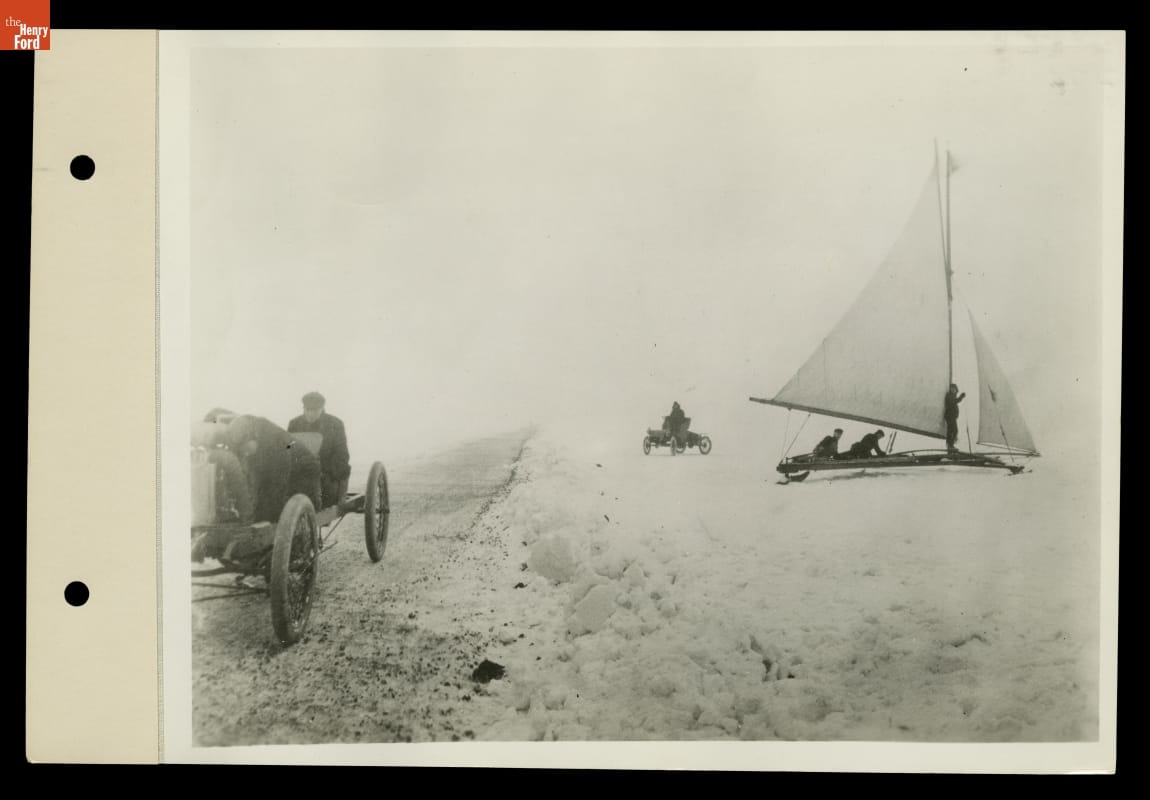 Henry Ford and Spider Huff Driving Arrow Racer on Lake Saint Clair, 1904