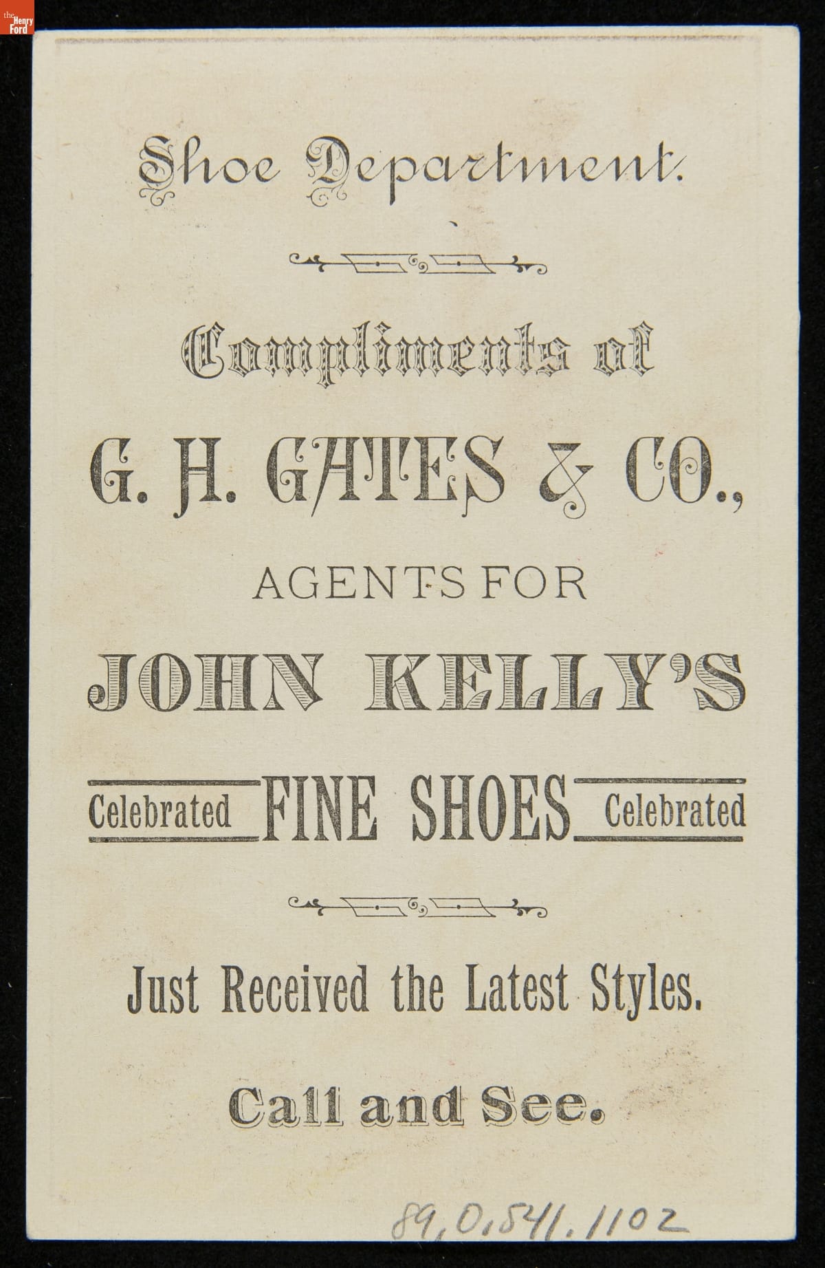 Trade Card for John Kelly's Fine Shoes, 1879-1890