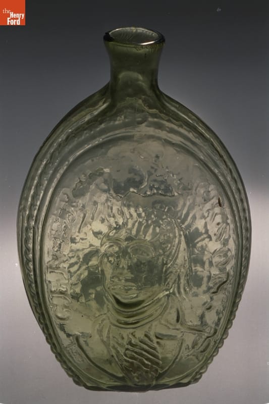 Glass factories in America began producing inexpensive, mold-formed flasks in the early 1800s. These figured flasks, often decorated with symbols of national pride or political or cultural affiliation, appealed to America's common man. Andrew Jackson -- soldier, farmer, politician and U.S. President -- was a hero to many early 19th-century Americans. Like other well-known Americans of that time, his likeness found its way onto flasks.