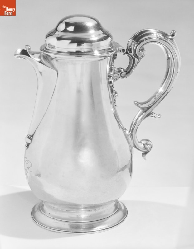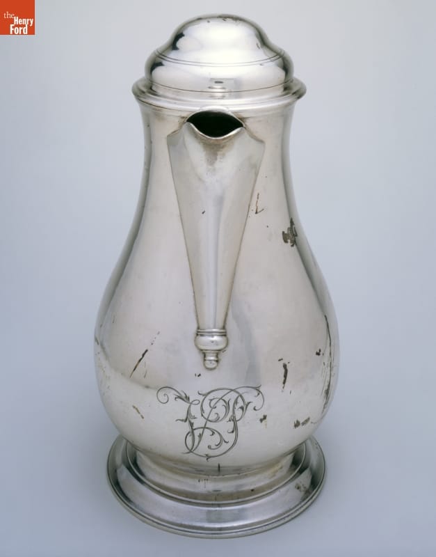 Master silversmith Myer Myers created this ewer, or covered jug, for Samuel Johnson, the first president of King's College (now Columbia University) and his wife Charity in the mid-to-late 1750s. A well-respected silversmith and a leader within colonial New York City's small Jewish community, Myer Myers crafted silver objects for many of New York's elite families as well as his synagogue, Congregation Sherith Israel.