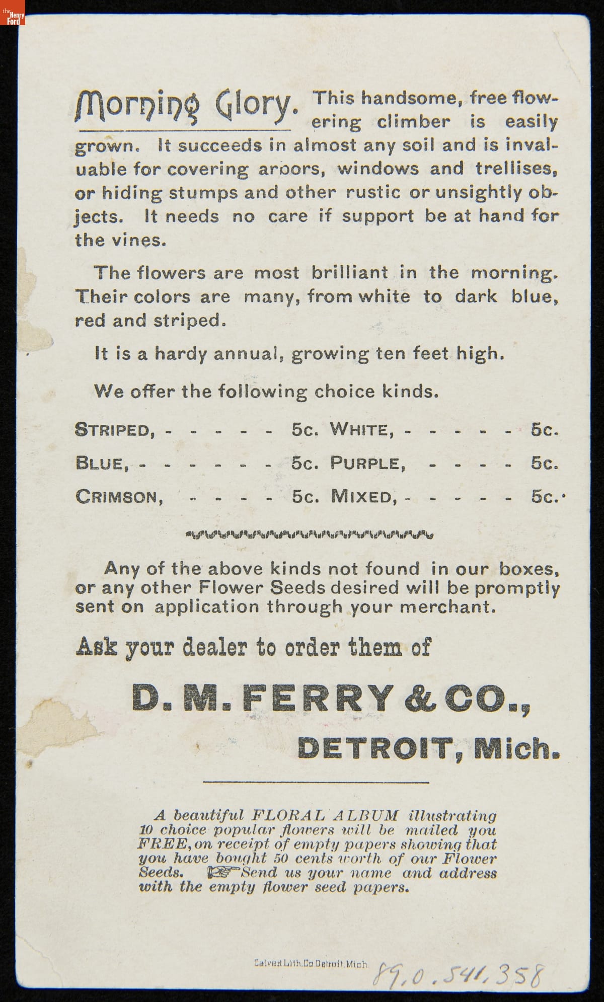 Trade Card for Morning Glory Seeds, D. M. Ferry & Co., 1889