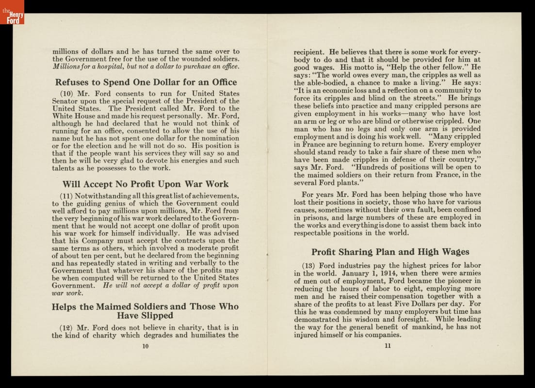 Campaign Brochure, "Henry Ford for United States Senator," 1918