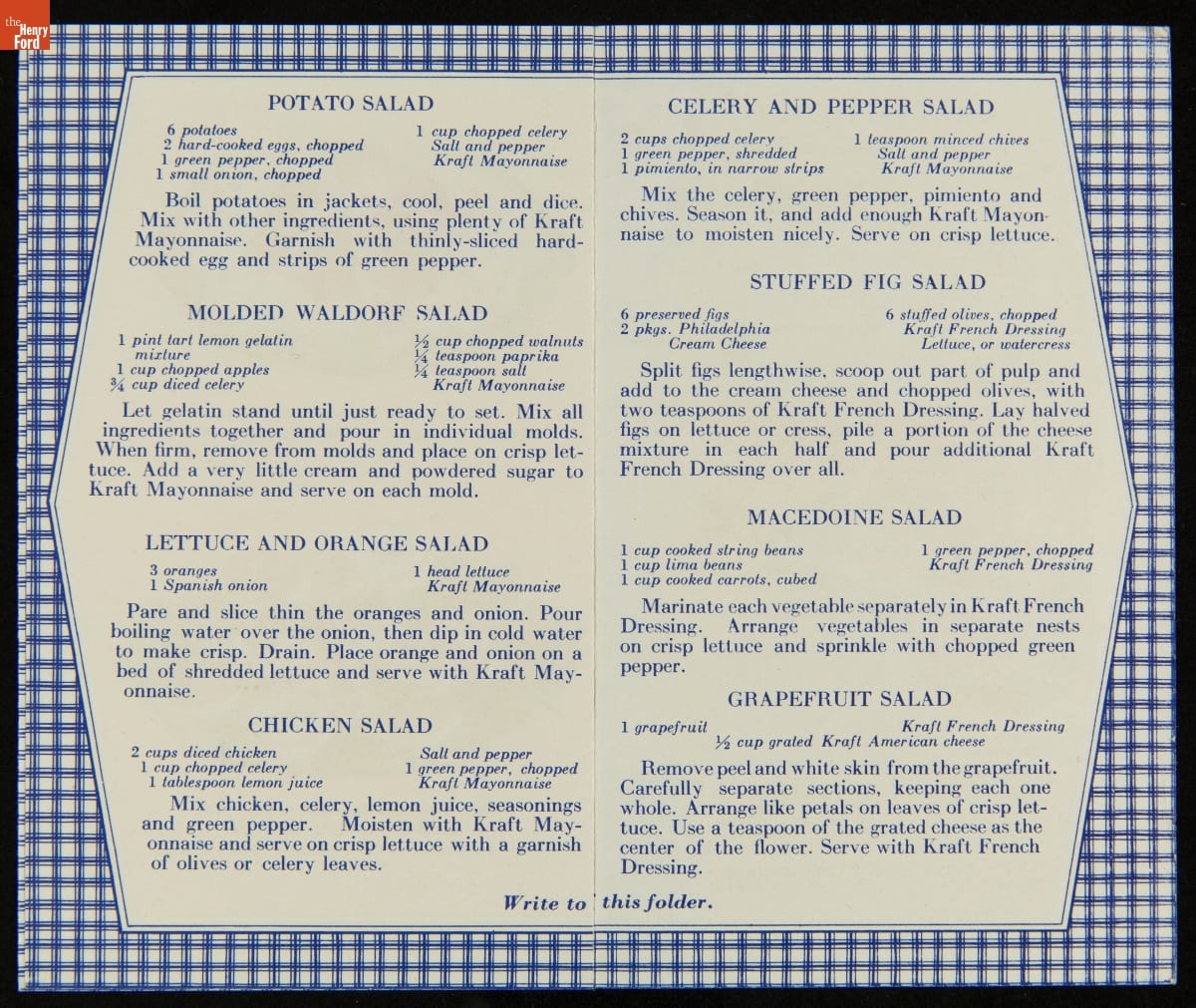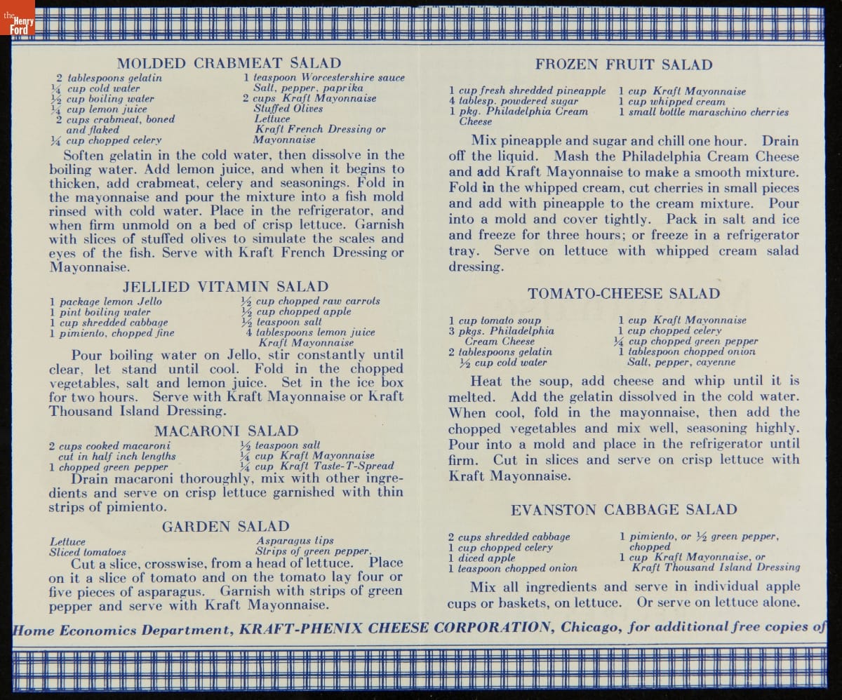 Recipe Booklet, "Kitchen Fresh Kraft Mayonnaise: Tempting Salad Recipes," circa 1935