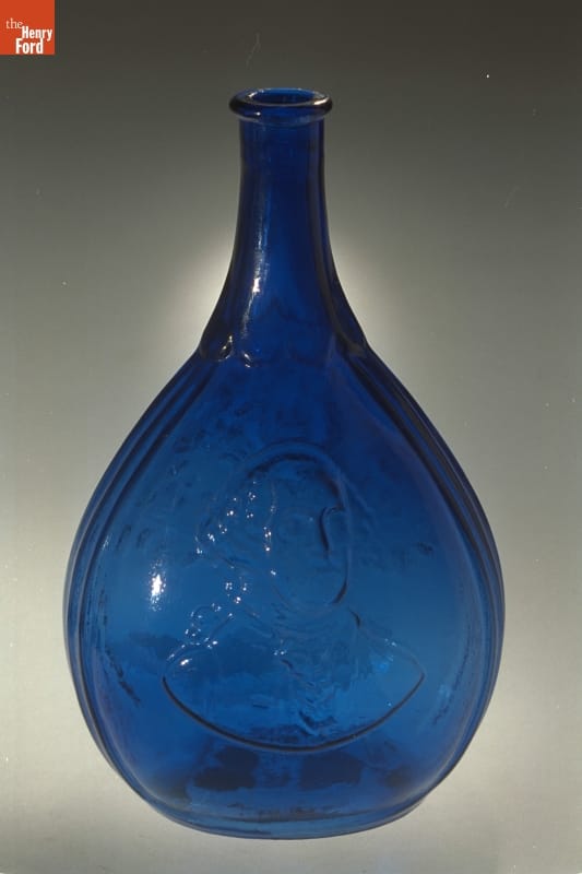 Glass factories in America began producing inexpensive, mold-formed flasks in the early 1800s. These figured flasks, often decorated with symbols of national pride or political or cultural affiliation, appealed to America's common man. Nineteenth-century Americans revered George Washington -- Revolutionary War hero, President and Father of His Country. Washington's likeness adorns at least seventy-two flask designs -- more than any other person.