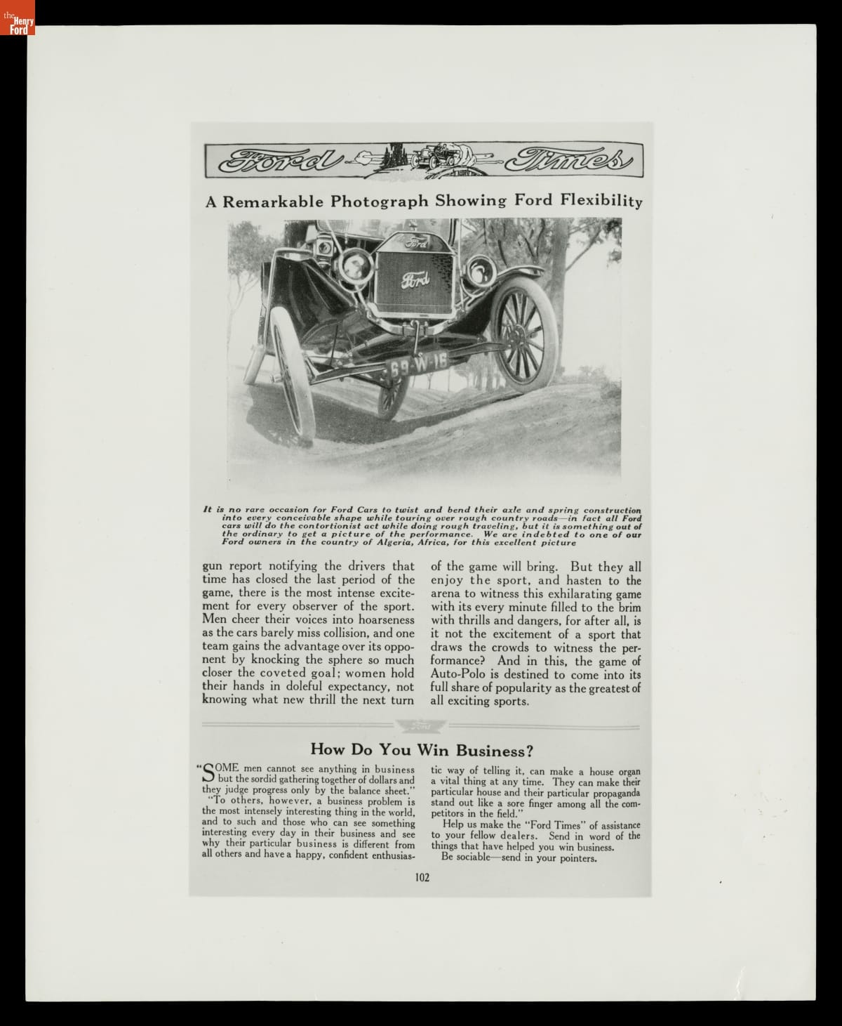 Page from December 1912 Ford Times, "A Remarkable Photograph Showing Ford Flexibility"
