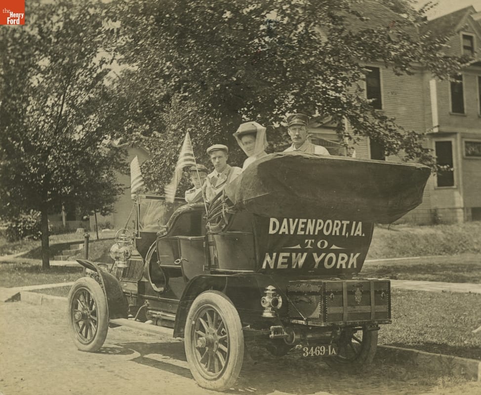 People in a Car Traveling from Davenport, Iowa to New York, circa 1905