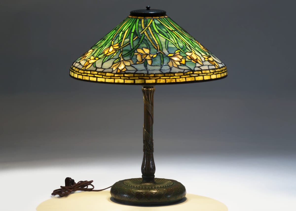 When designer Clara Driscoll created this daffodil patterned lamp for Louis Comfort Tiffany she did not realize that it was the first of a series of floral electric lamps shades, which included Wisteria, Poppy and Laburnum. Driscoll was the leader of a group of female designers known as "The Tiffany Girls", all unmarried women who designed and fabricated decorative domestic wares from desk sets to jewelry.