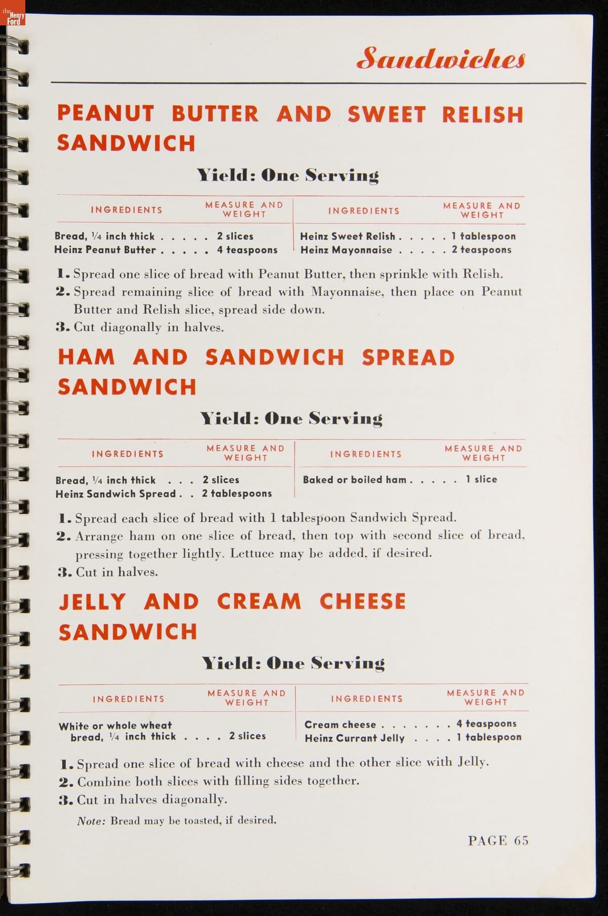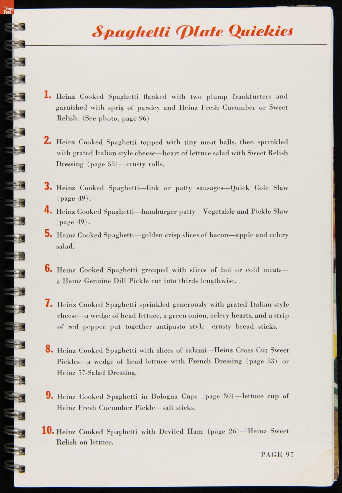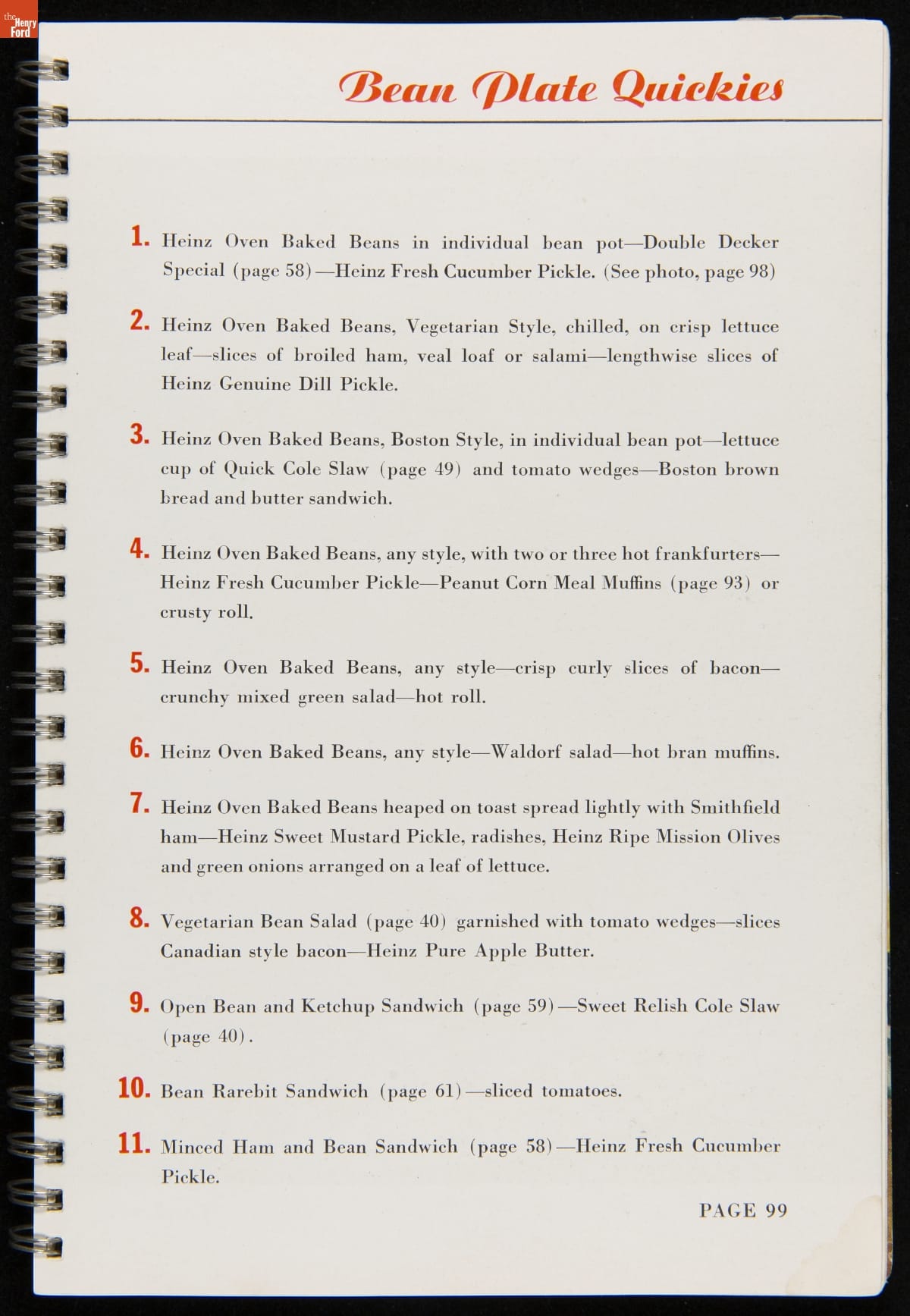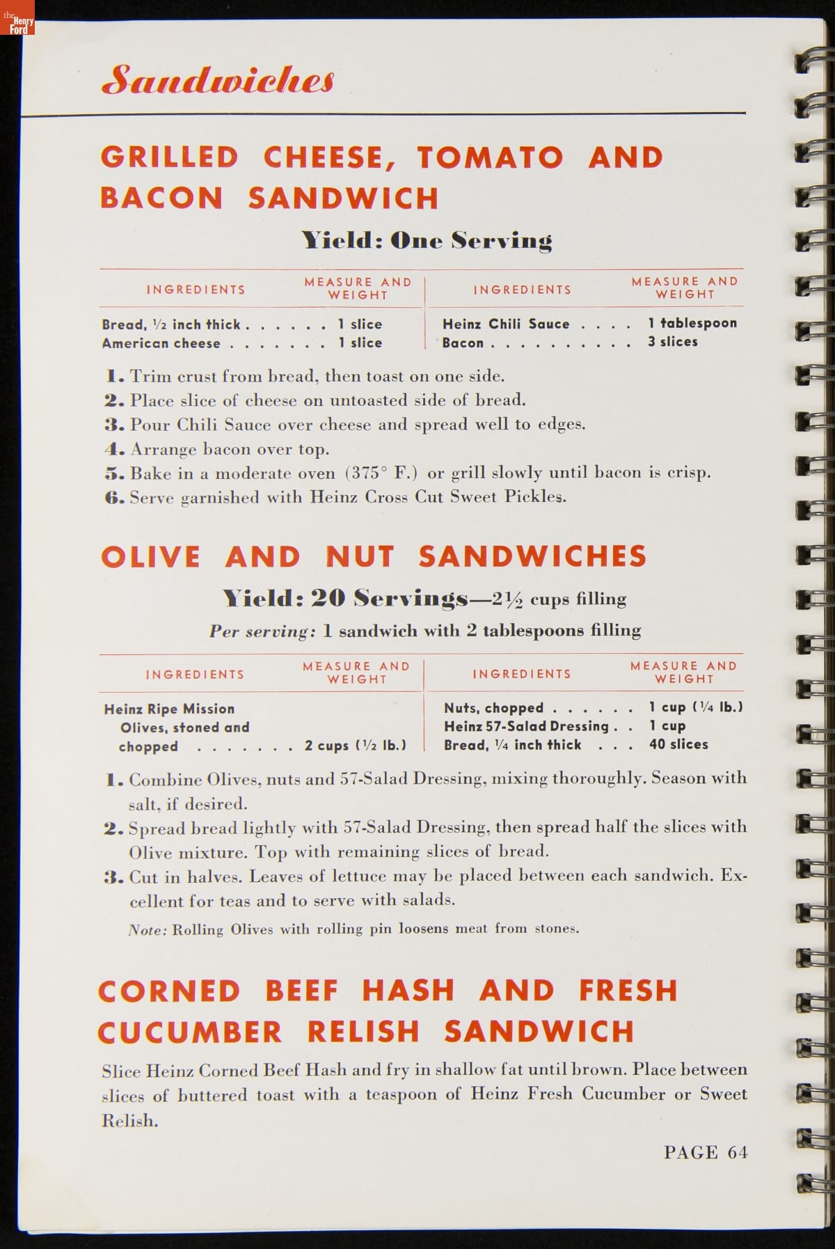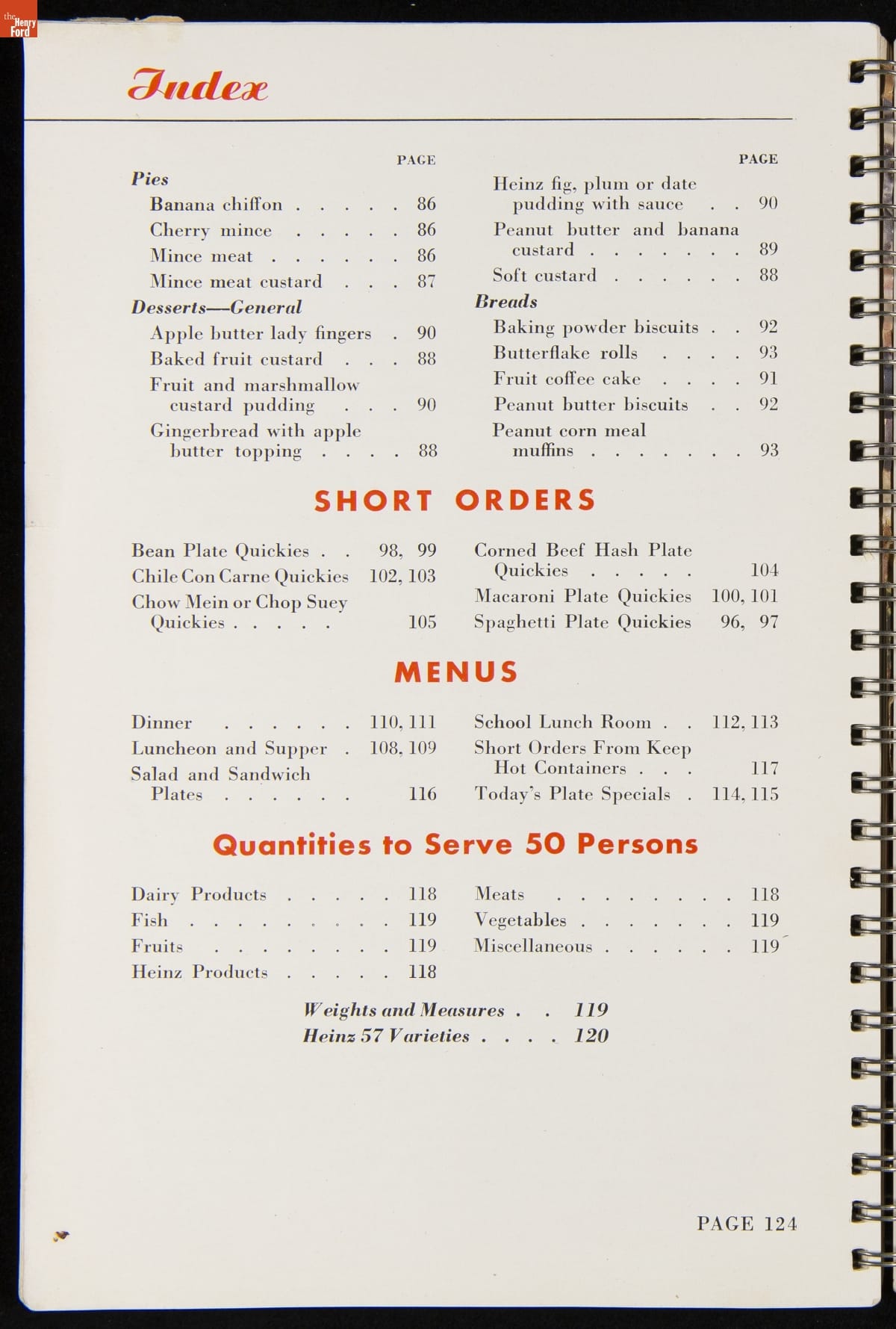 Recipe booklets and cook books can be general or specific in the range and type of food featured within their pages. Like other manufactured food companies, the H.J. Heinz Company published recipe booklets which featured recipes using their products. This recipe booklet from 1940 provides recipes to serve a large number of guests, including full menu suggestions, utilizing Heinz products.
