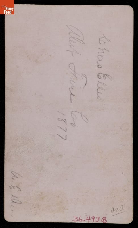 Handwritten in pencil on back of image: Chas Ellis / Alert Fire Co / 1877 / W.E. Drew