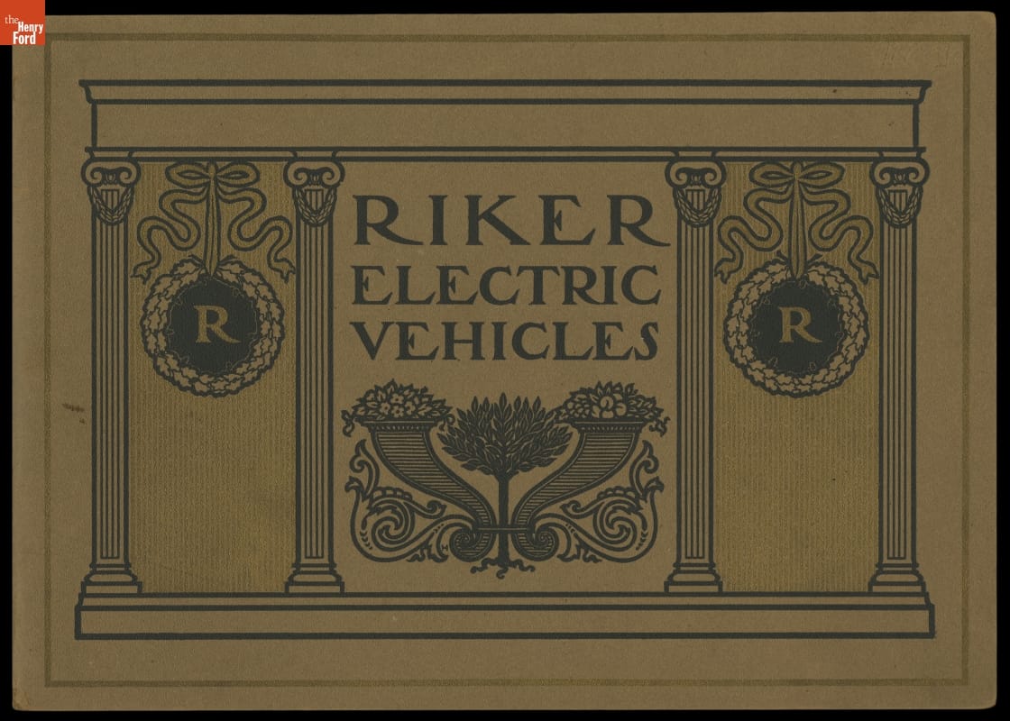The Riker Electric Vehicle Company, formed by inventor Andrew Riker, became known for producing electric touring cars and commercial trucks. This catalog from 1900 shows the company's line of electric vehicles. Riker later developed internal-combustion engines for the Locomobile Company of America.