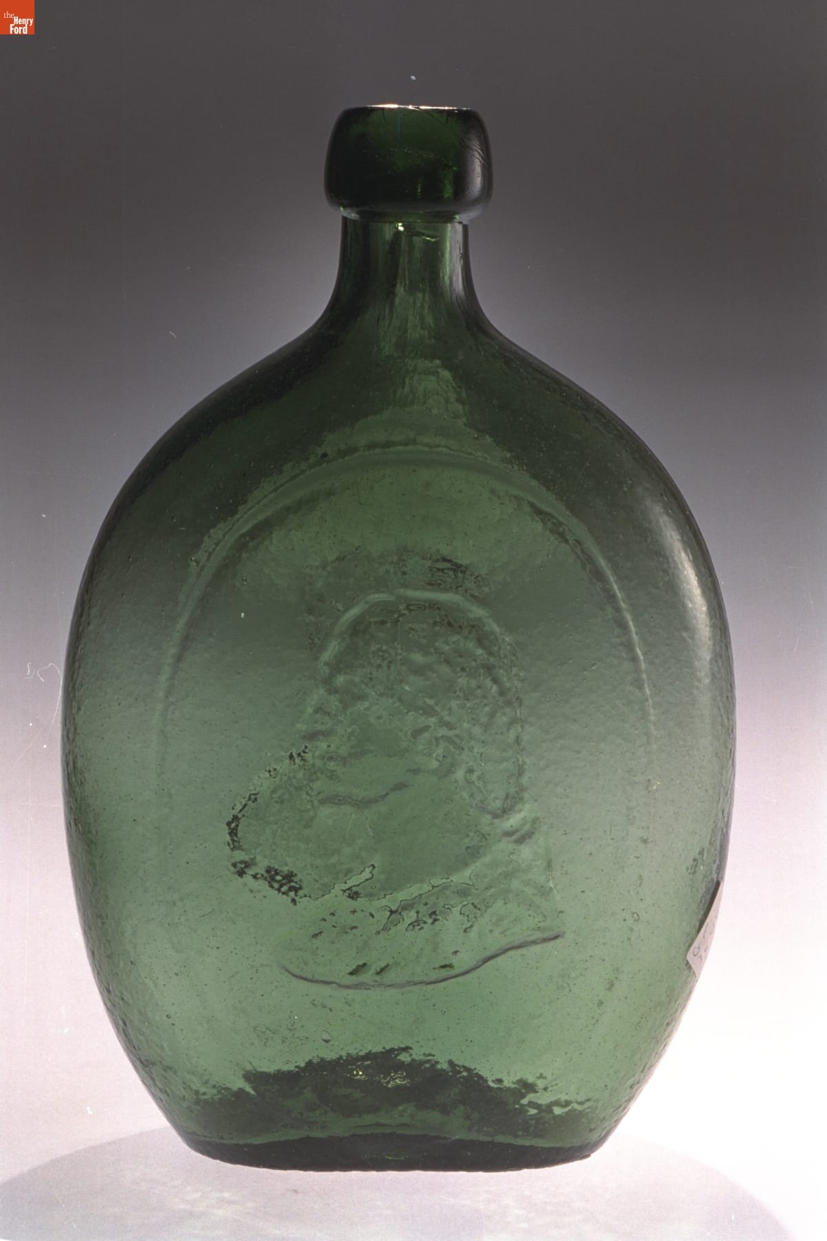 Whether depicted as commander-in-chief, the first president of the United States, or a symbol of the republic, George Washington is a common likeness on early American flasks. Washington appears on 72 recorded flask designs--more than any other person. This example depicts Washington as a classical statesman with major general Zachary Taylor, who became the 12th United States president in 1849.