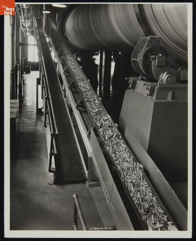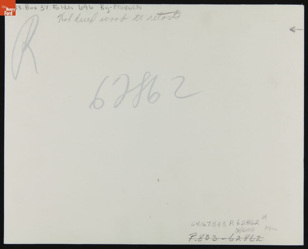 Ford Motor Company made charcoal from wood wastes produced by its Michigan lumber mills. Wood chips were collected, dried, and burned in retorts. These special ovens captured the combustion gases so that they could be used to generate some of the energy needed to run the plant. The resulting char was crushed, mixed with starch, and compressed into useable briquettes.