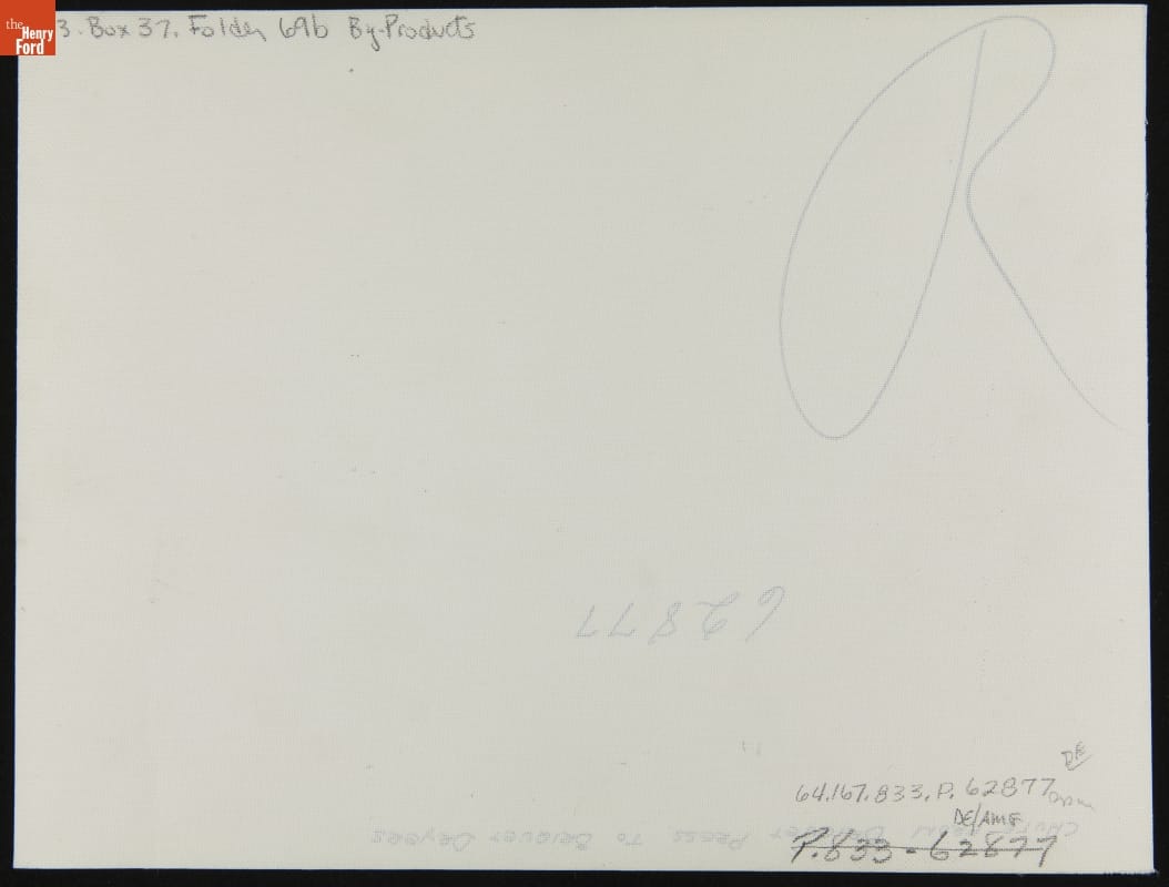 Ford Motor Company made charcoal from wood wastes produced by its Michigan lumber mills. Wood chips were collected, dried, and burned in retorts. These special ovens captured the combustion gases so that they could be used to generate some of the energy needed to run the plant. The resulting char was crushed, mixed with starch, and compressed into useable briquettes.
