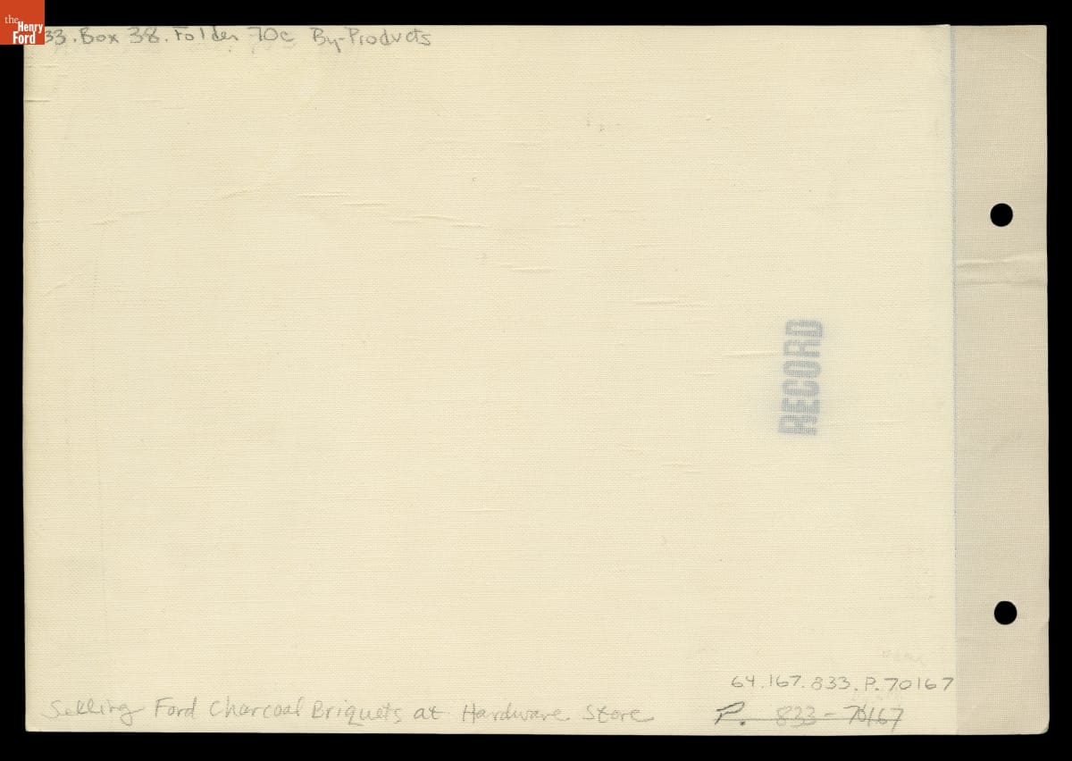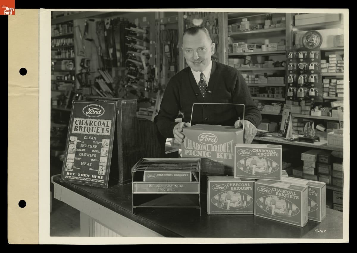 Ford Motor Company manufactured charcoal briquettes from wood wastes generated by its lumber operations in Michigan's Upper Peninsula. To help promote the briquettes, Ford also sold charcoal grills through its auto dealerships and employee commissaries, as well as traditional hardware and sporting goods stores. Charcoal provided picnickers with a quick-burning fuel that eliminated the work of gathering and lighting firewood.
