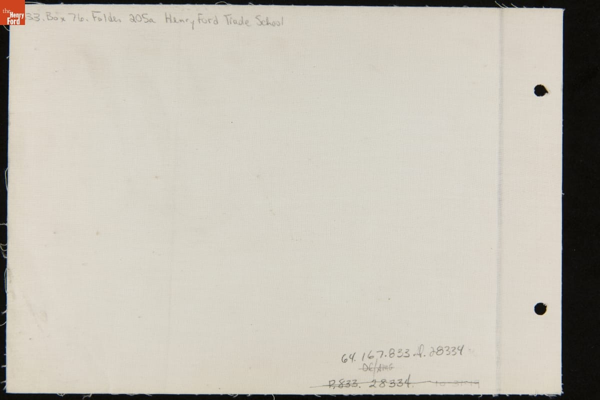 Boys who attended the Henry Ford Trade School learned by doing. The school, the brainchild of Henry Ford, trained teenage boys in a variety of skilled industrial trade work -- machining, metallurgy, drafting, and engine design, among others. Students created useful components for local factories in hands-on lab and shop classes. In addition to the manual training received, academic classes were required.