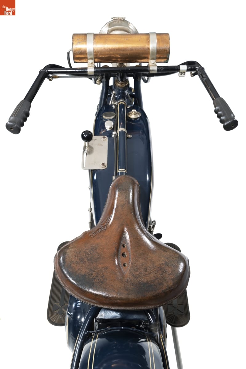 Seven years before his famous transatlantic flight, 18-year-old Charles Lindbergh purchased this Excelsior motorcycle in his hometown of Little Falls, Minnesota. During his student days at the University of Wisconsin, Lindbergh rode the bike on trips to Madison, Wisconsin; Camp Knox, Kentucky; and Jacksonville, Florida. The rough, punishing roads had Lindbergh making frequent repairs to the motorcycle.